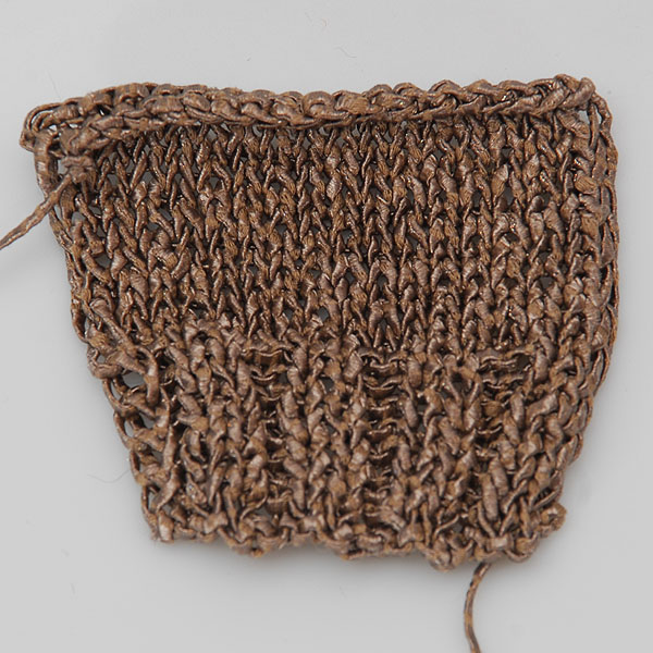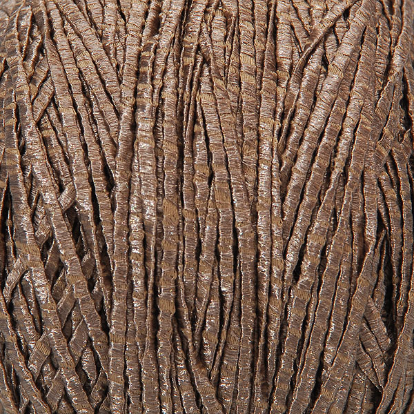 Efektní stužková viskozová pletací příze lesklá v barvě hnědé. Lesklé vlákno je vedeno po obvodu příze a vytváří nepravidelné "proužky". Příze je jemná, nekouše a při pletení není třeba složitých vzorů, je vhodná na horké letní dny a přijemně chladí. Viskozová příze svým leskem působí velmi elegantně a hodí se ina společenský oděv.