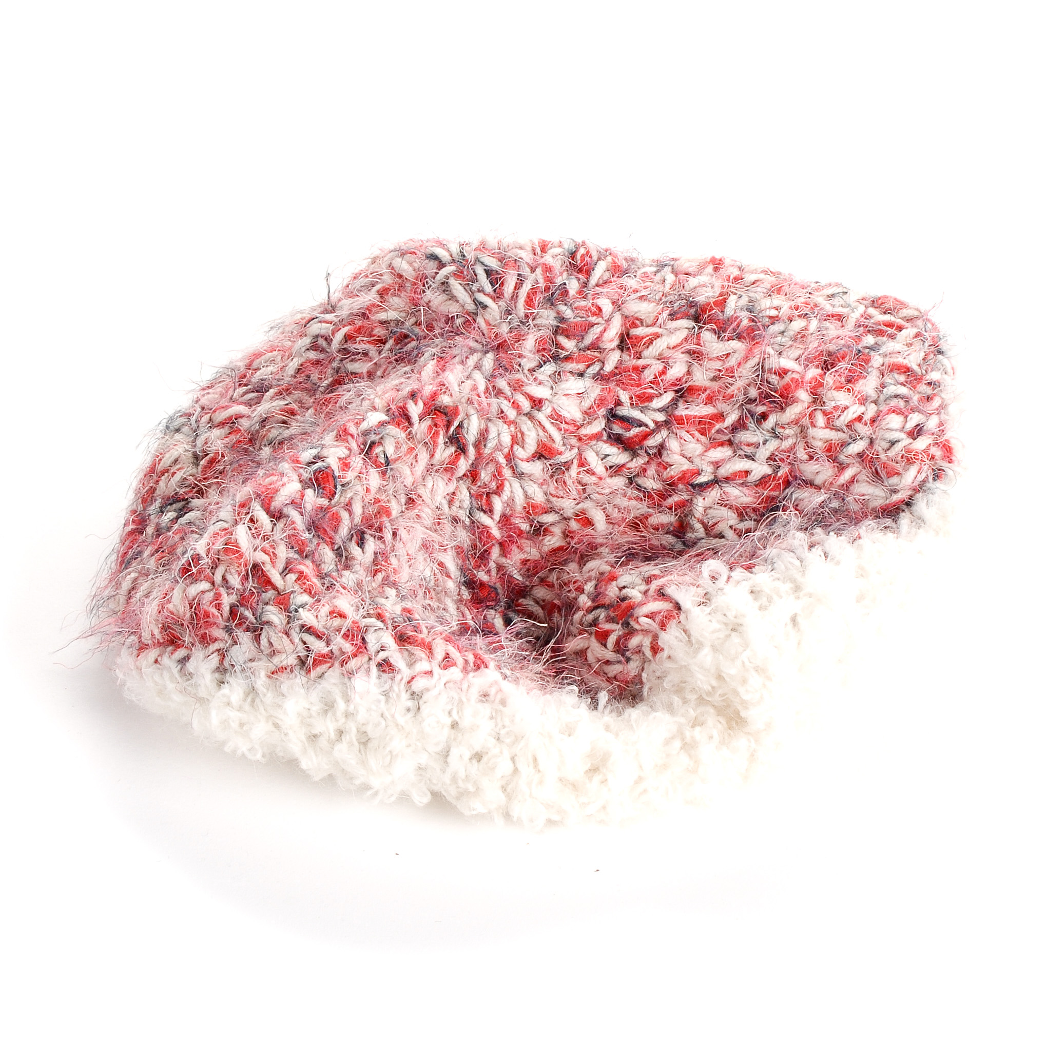 Háčkovaný baret design Marlen sladěný v barvách červenobílého melíru. Baret je vyroben pouze v jednom provedení z pletací příze Marlen, jedná se tedy o originál. Barety, čepice, šály i plédy z naší nabídky nejen že zahřejí, ale mohou být i netradičním dárkem, který potěší.