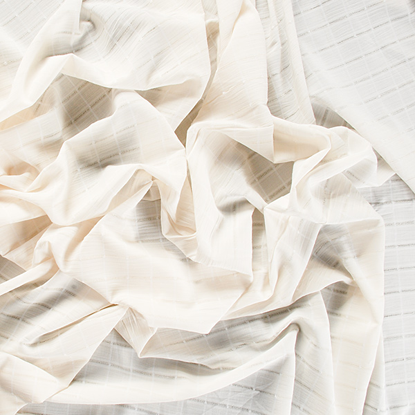 Bavlněná látka - se vzorem kostek v barvách bílé a smetanové. Metráž má matný povrch, je lehce průsvitná a jemně splývavá. Je vhodná na letní halenky, košile.