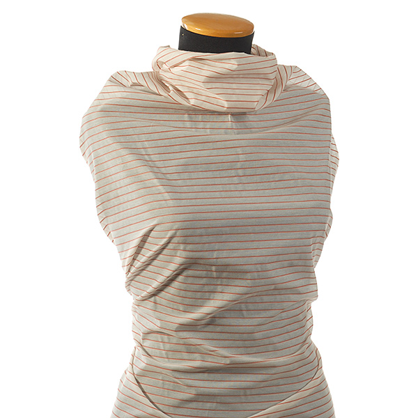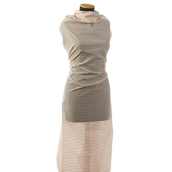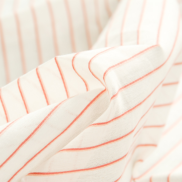 Bavlněný etamín -jemná žakárová látka se vzorem proužků v barvách růžové a slonové kosti. Bavlněný žakár metáž má matný povrch a je jemně splývavá. Je vhodná na letní halenky, košile i na patchwork.