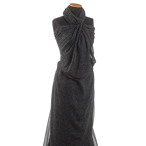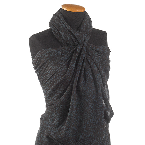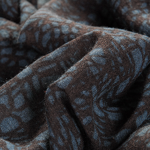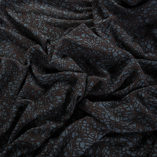 Voál bavlna směs jemný bavlněný voál tisk abstraktní motiv v barvách tmavě modré a hnědé. Látka je lehce průsvitná, pružná svou vazbou, krásně splývavá a vzdušná. Je velmi příjemná na tělo a vhodná na horké letní dny.
