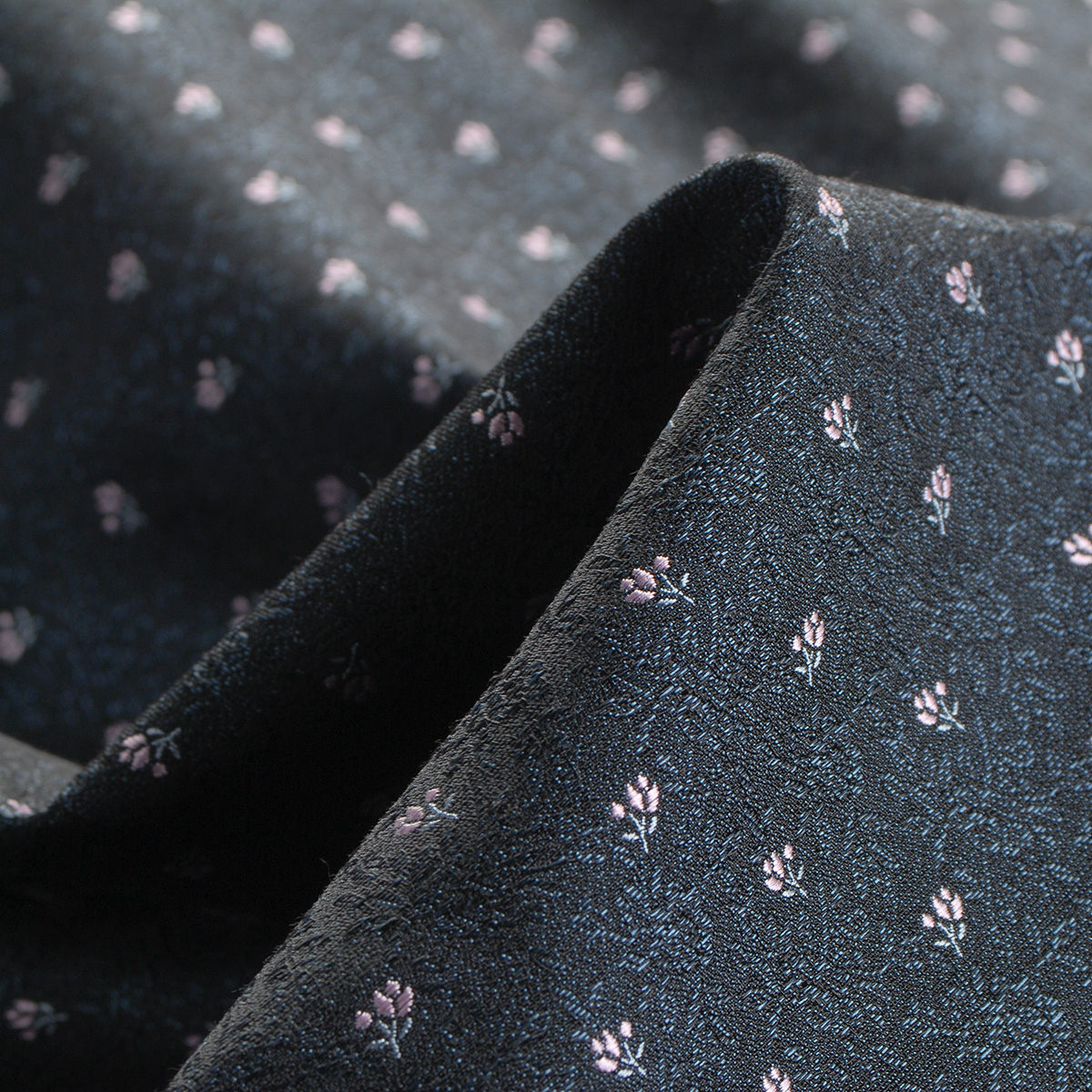 Brokát nepružný pevnější drobný květ modročerný