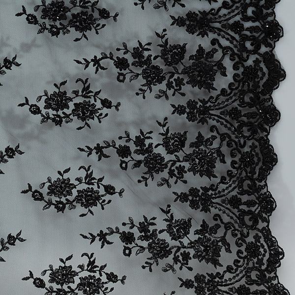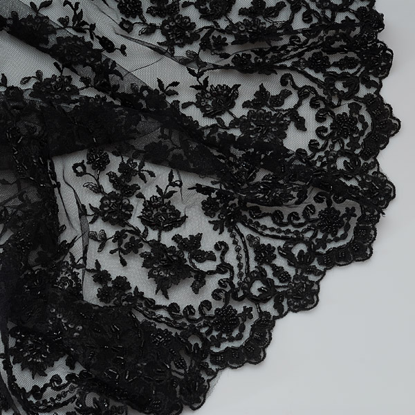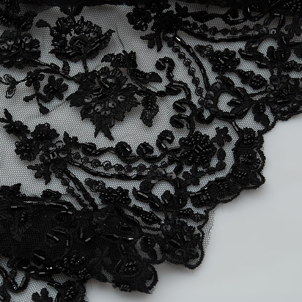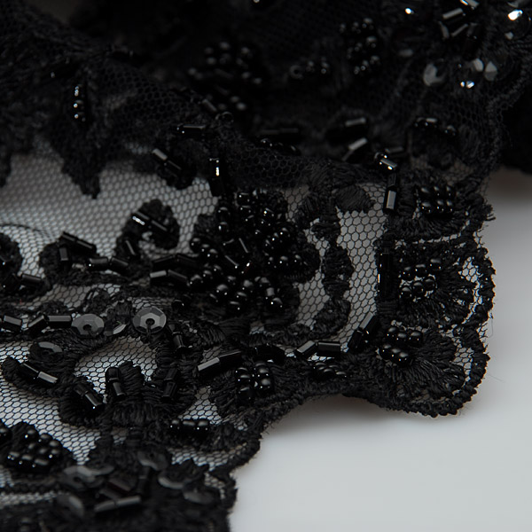 efektní krajka pošitá korálky a flitry na tylu, šíře látky 130 cm
