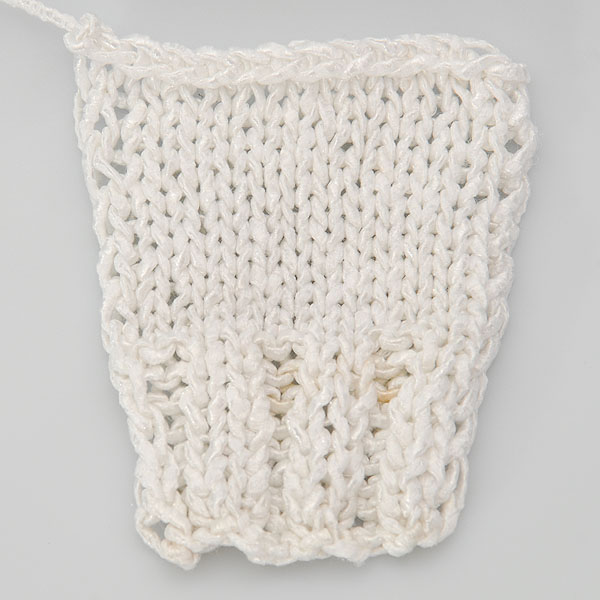 - 10 ok x 10 řad je cca 4,5 x 3 cm pleteno na jehlicích č. 4 při použití vzoru první řada LS vždy H (lícová strana hladce), druhá řada RS vždy O (ruobvá strana obrace)