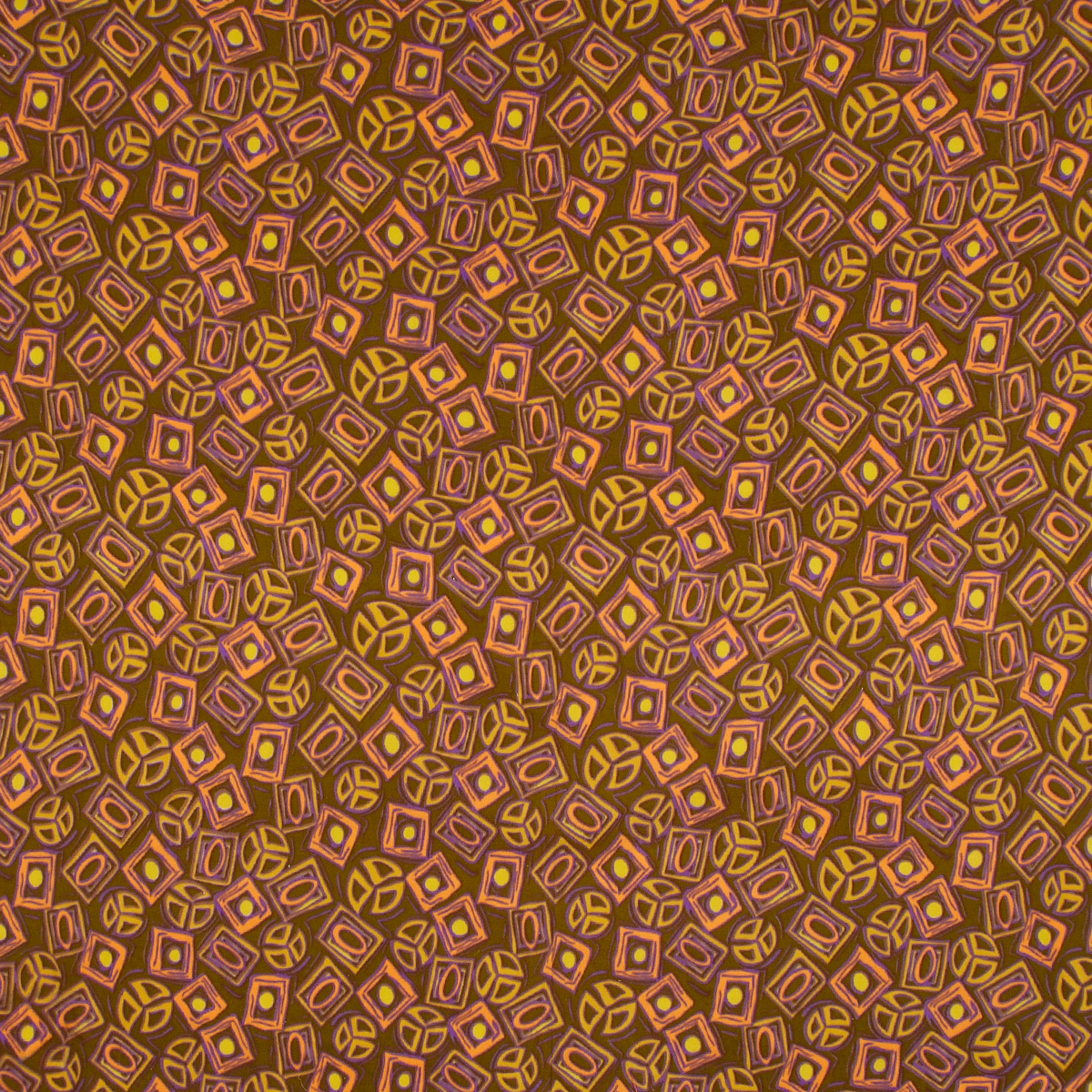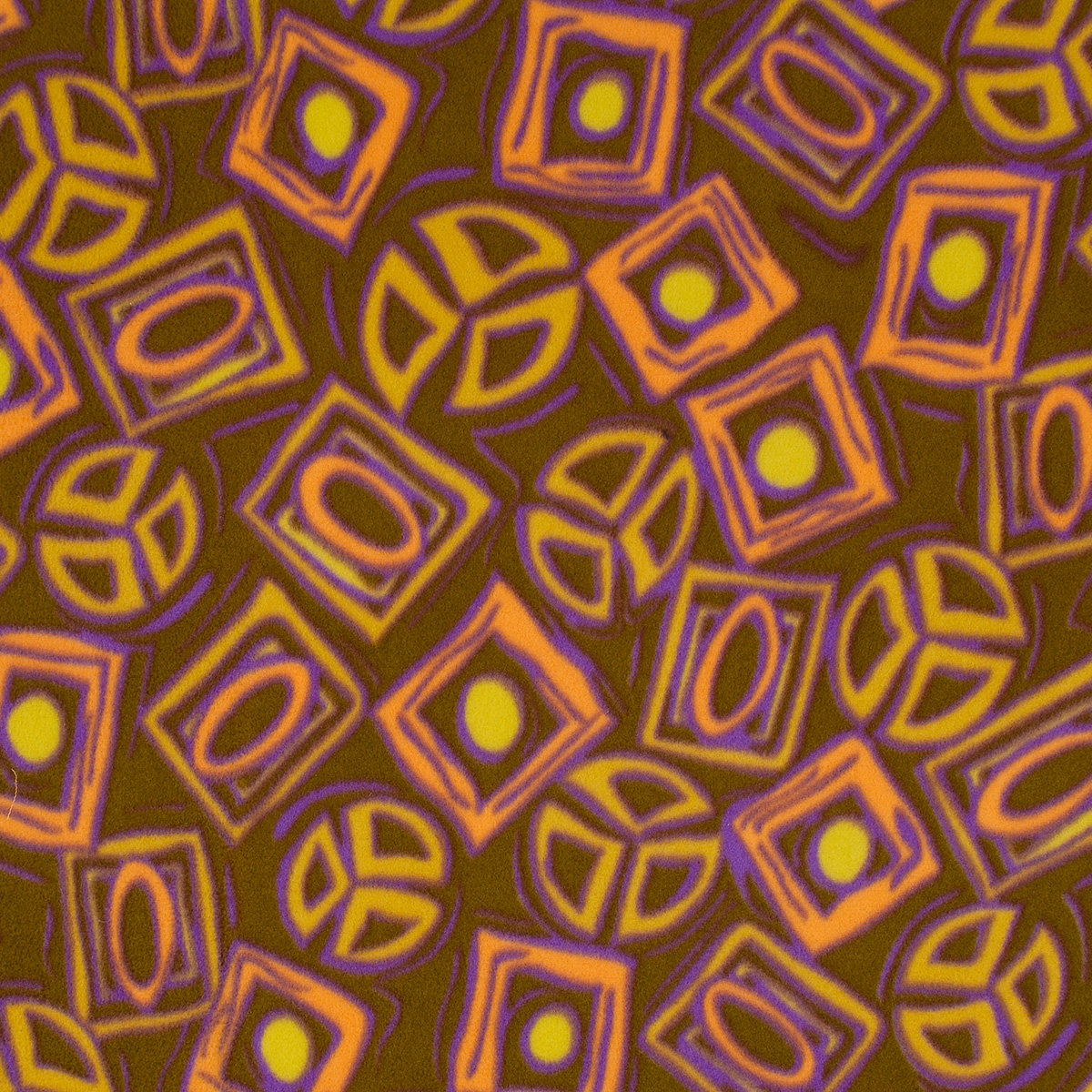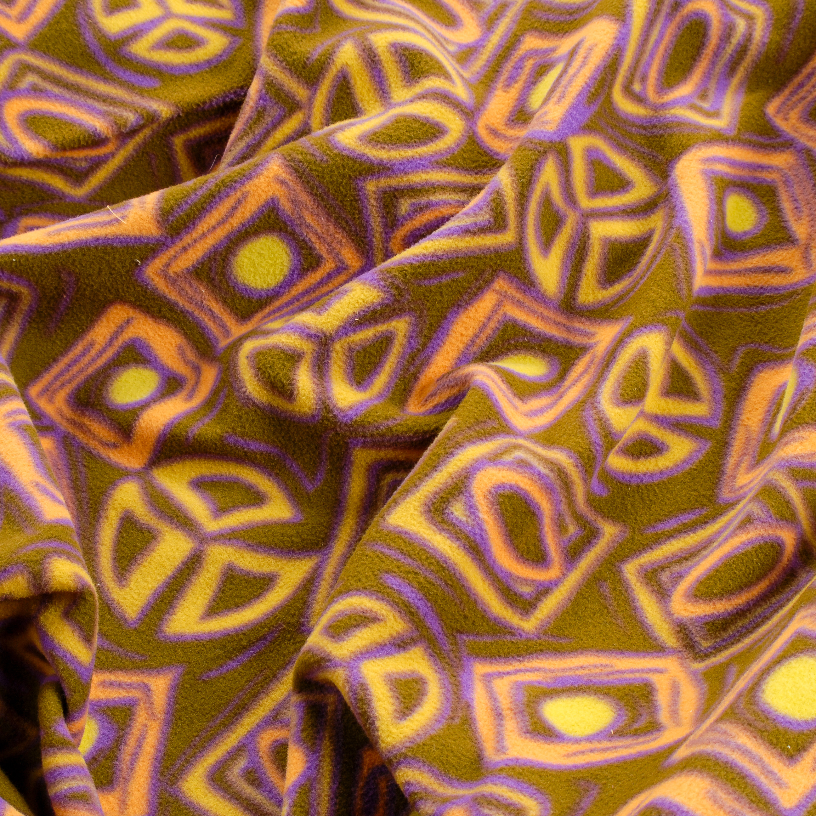 Fleece geometrický vzor kahki oranžovofialová