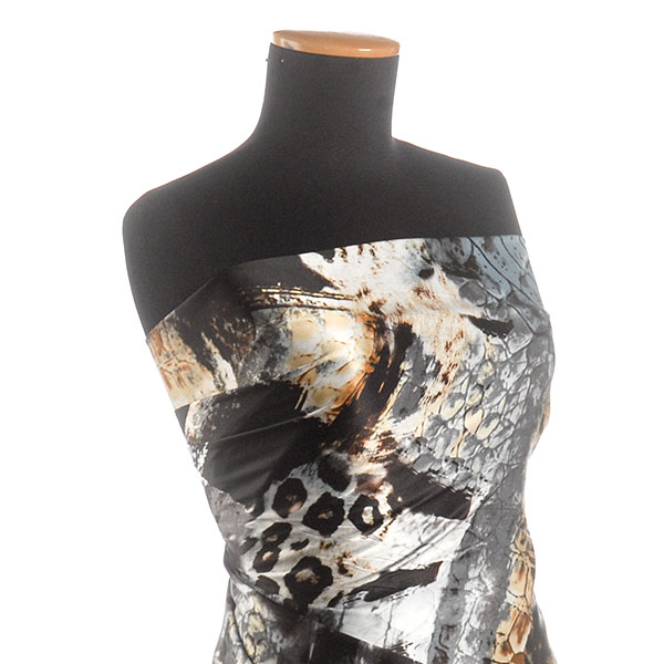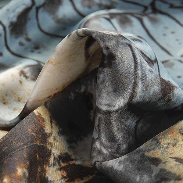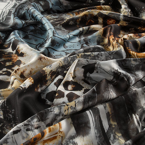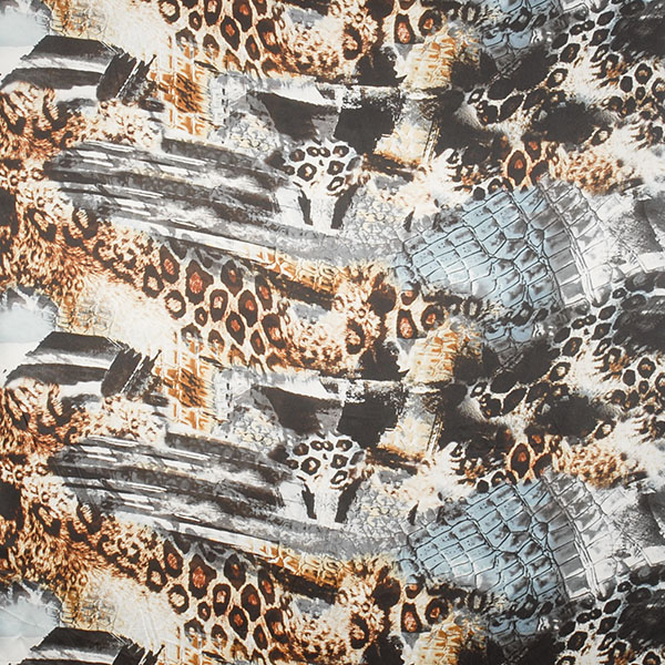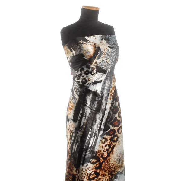 Hedvábný satén abstrakní zvířecí vzor jemný hedvábný satén s nápadným zvířecím vzorem hnědé barvy.Hedvábný satén abstraktní zvířecí vzor má digitálně tištěný látka je hebká,bohatě splývavá, je neprůsvitná má charakteristický lesklý saténový povrch.