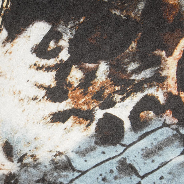 Vzor:Velký nápadný zvířecí vzor v hnědožluté,černé a ocelově šedé barvě je velký cca 40x140 cm,vzor přes celou šířku látky na sebe navazuje po ccac 20cm.