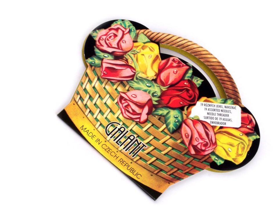 Jehly sada na ruční šití Košíček klasická sada jehel na ruční šití v papírové mapce. Jehly sada na ruční šití Košíček je praktické balení jehel na domácí šití i na cesty včetně navlíkače nití.