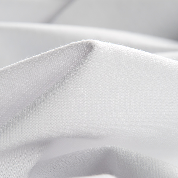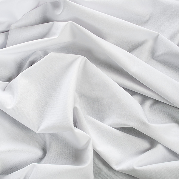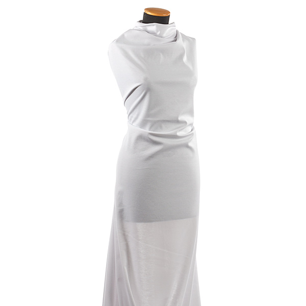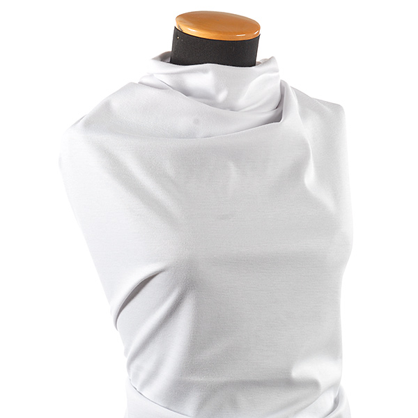 Látka, viskozový úplet -jemný úplet imitující hedvábí bílé barvy. Látka je jemná,pružná a splývavá.