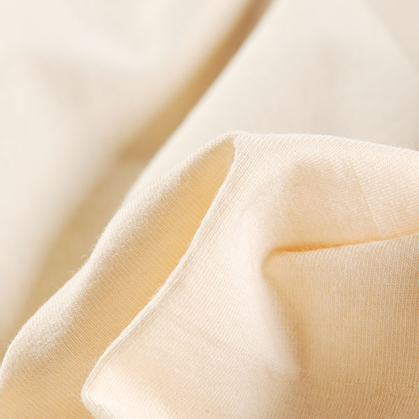 Jemný viskozový úplet proužek tunel -úplet smetanovovanilkové barvy je bez pevného kraje tzv."tunel" (pleten do kulata) s jemným matným povrchem smetanovovanilkové barvy s tenkým plastickým proužkem stejné barvy po celé šířce tunelu.Jemný viskozový úplet proužek tunel je jemná,pružná a lehce splývavá látka.