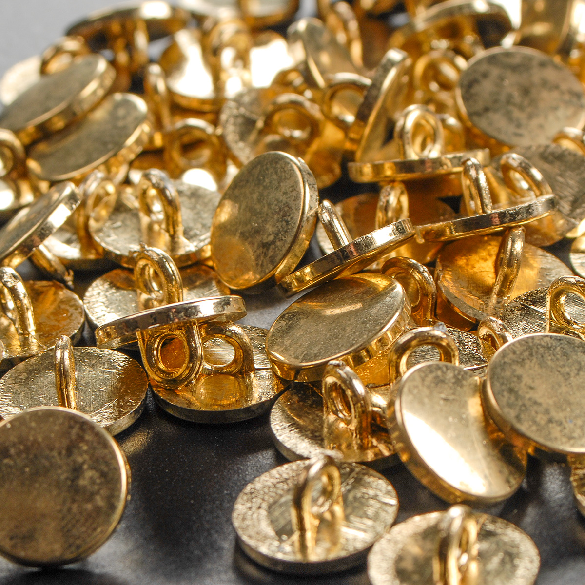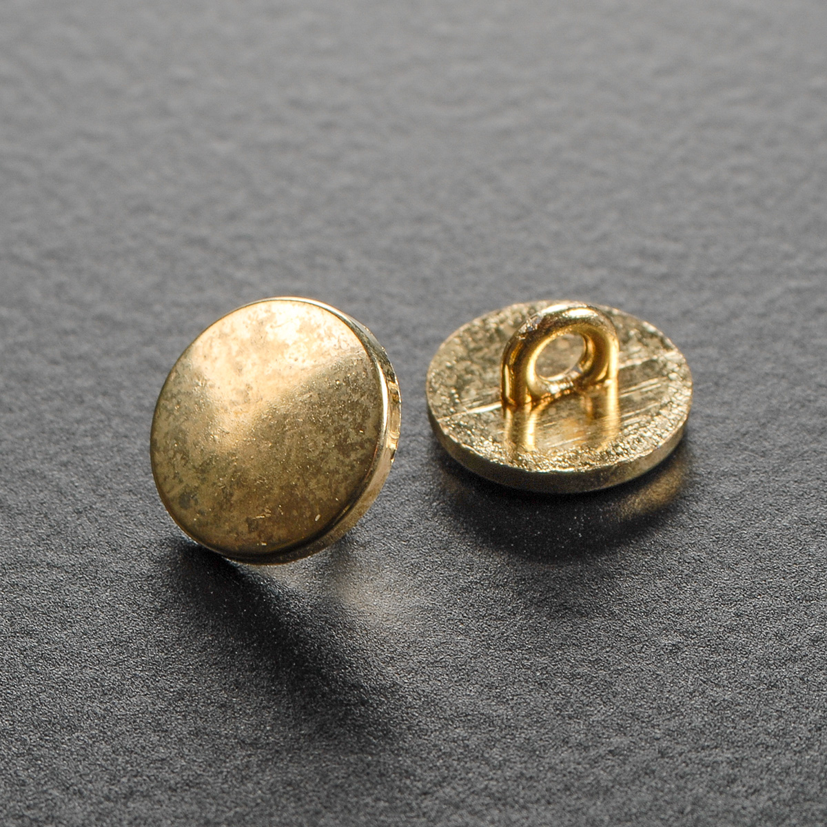 Knoflík kulatý plochý zlaté barvy s krčkem 22"