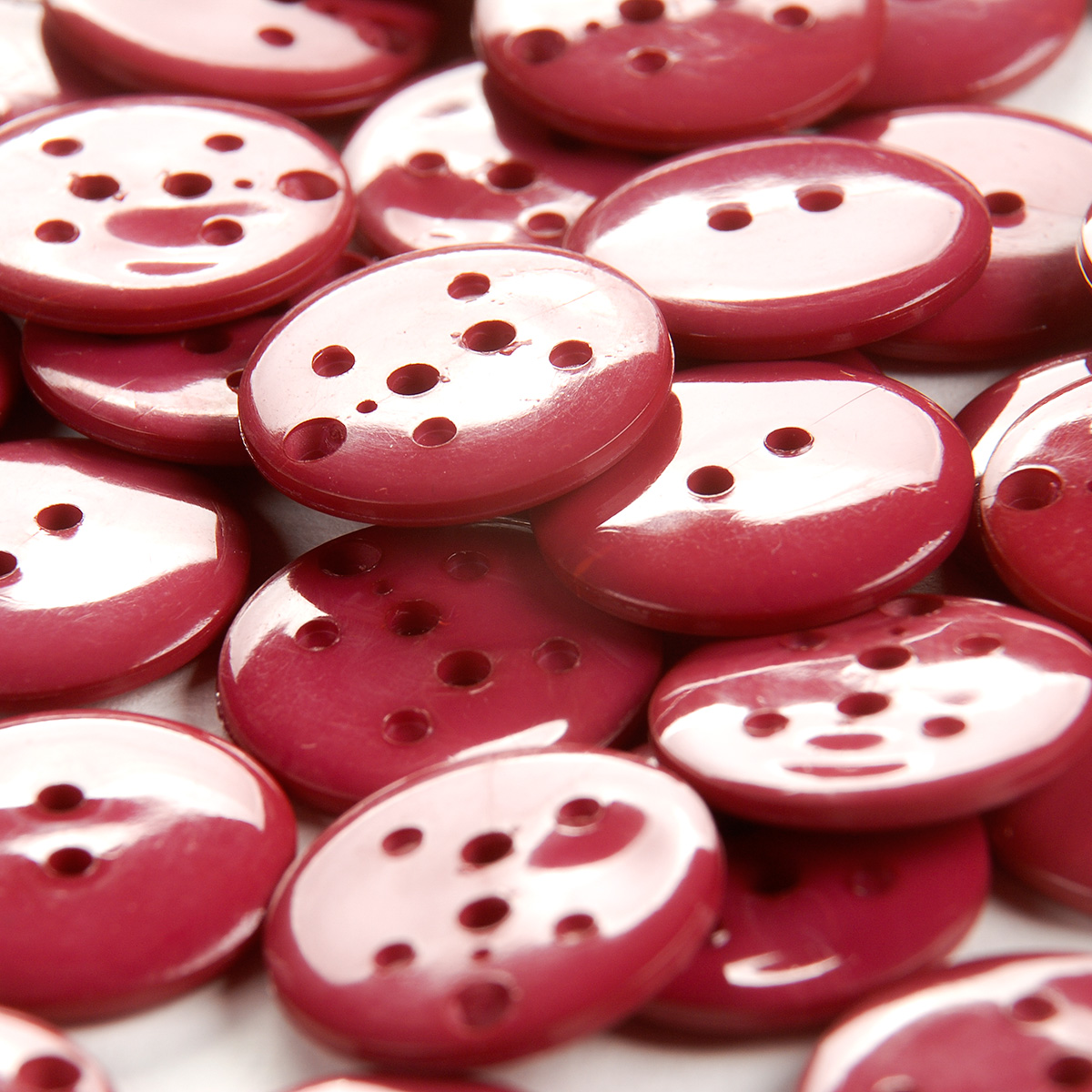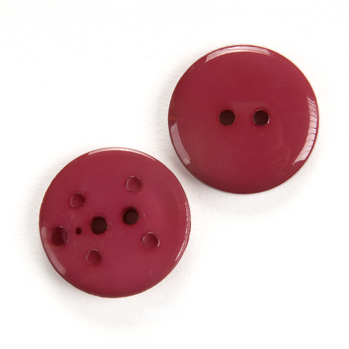 Knoflík plastový kulatý vínový 30" - elegantní knoflík klasického kulatého tvaru se dvěma dírkami ve vínové barvě. Knoflík plastový kulatý vínový 30" s matným hladkým povrchem.