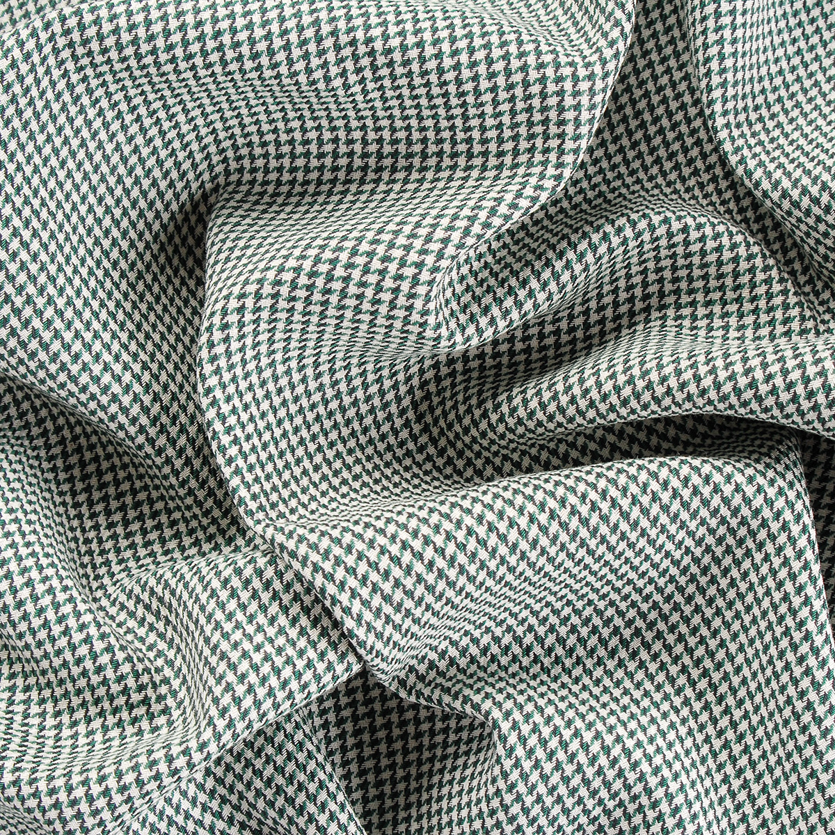 Kostýmová bavlněná látka vzro pepito nebo i kouhotí stopa v barvách zelené a bílé. Látka je středně silná, s matným povrchem, je lehce splývavá a pružná, je vlemi příjemná na omak.
