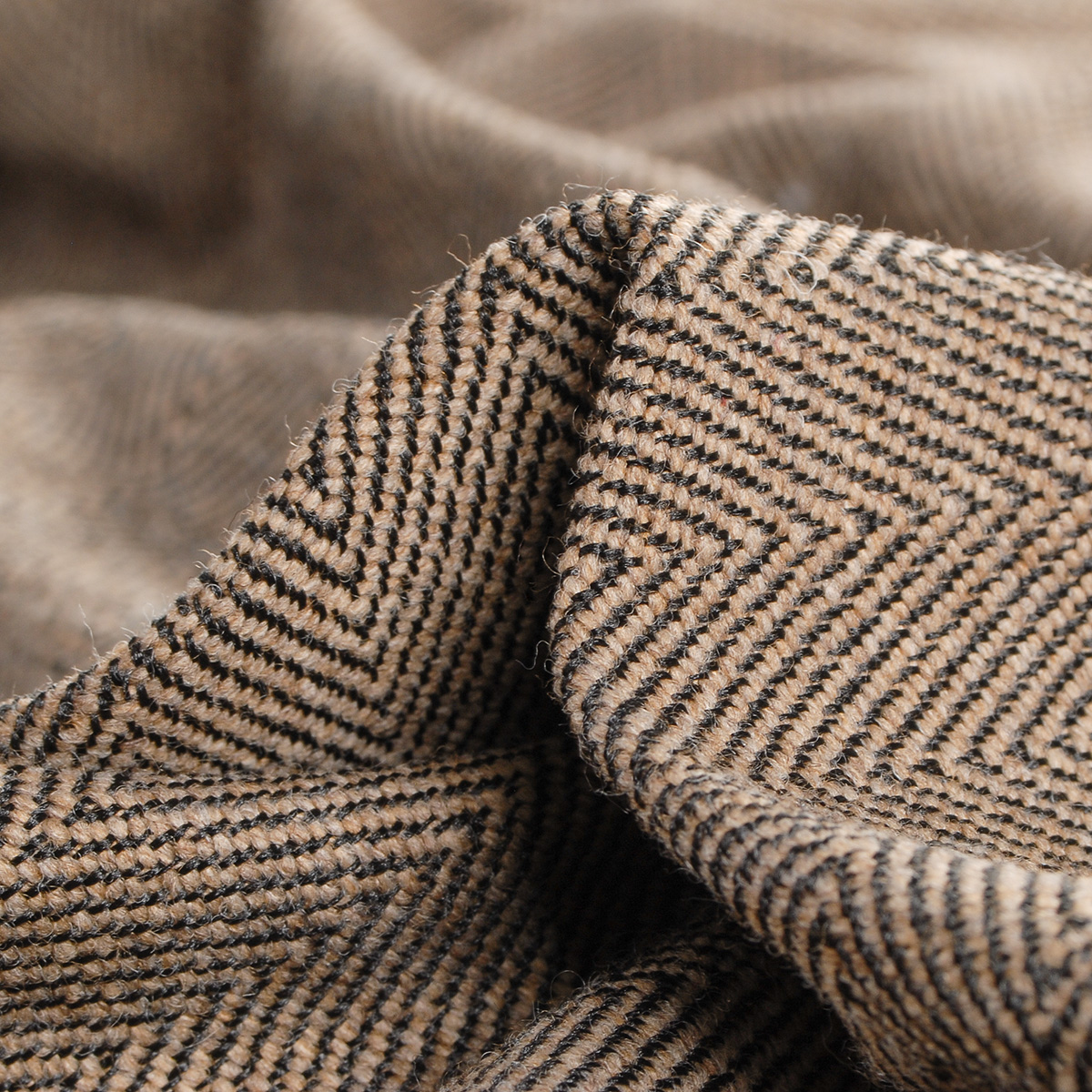 Kostýmová látka Art Fabrics vzor rybí kost mocca/černá