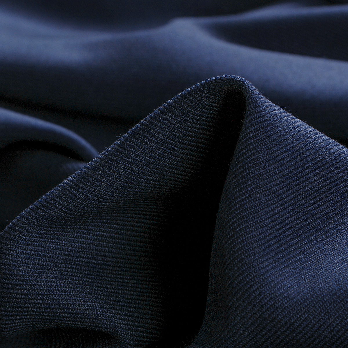 Tato elegantní kostýmová látka v nadčasové tmavě modré barvě vyniká svou klasickou keprovou vazbou (twill), která materiálu dodává jemnou strukturu a vyšší odolnost. Díky směsi s elastanem je látka příjemně pružná, jemná na dotek a dobře splývavá. Látka má charakteristickou šikmou strukturu proužků na lícové straně, má matný povrch a je ideální volbou pro šití dámských sak, šatů i kalhot.