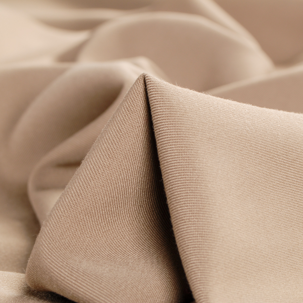 Kostýmová vlněná látka s příměsí polyamidu ve studeném odstínu hnědé barvy. Látka je střední síly vhodná na tubovou sukni, pánské i dámské kalhoty. Tkanina je poddajná, je lehce splývavá a příjemná na omak.