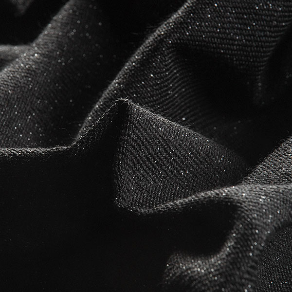Kostýmová látka lamé černostříbrnákostýmová látka s vetkaným lurexovým vláknem v černostříbrné barvě. Kostýmová látka lamé černostříbrná je tkanina střední síly, lehce splývavá a hřejivá, imituje ručně tkané látky a je vyrobena ve vlastní tkalcovně firmy MarLen.