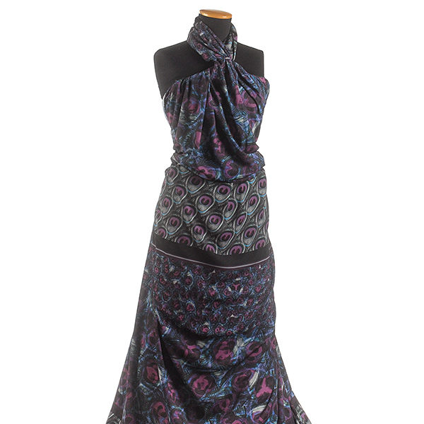 Tisk vzoru pavých per je cca 95 x 148 cm.