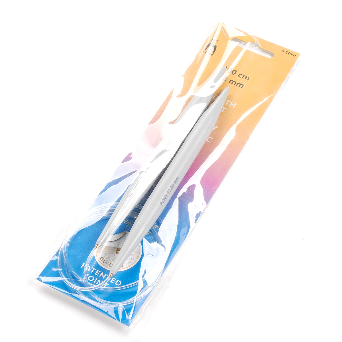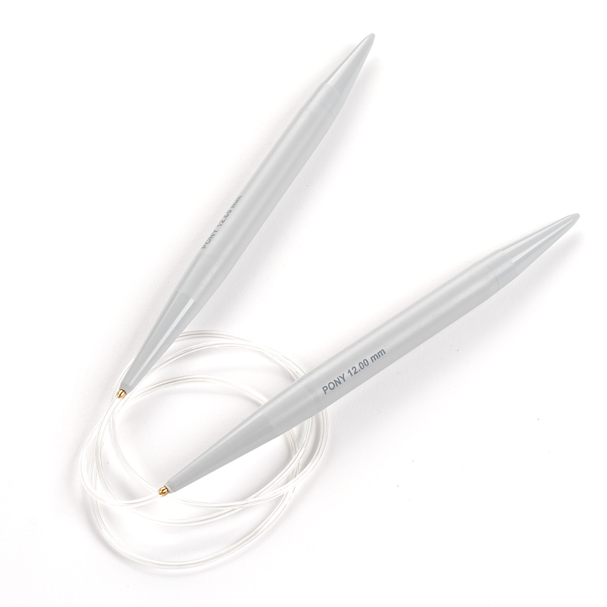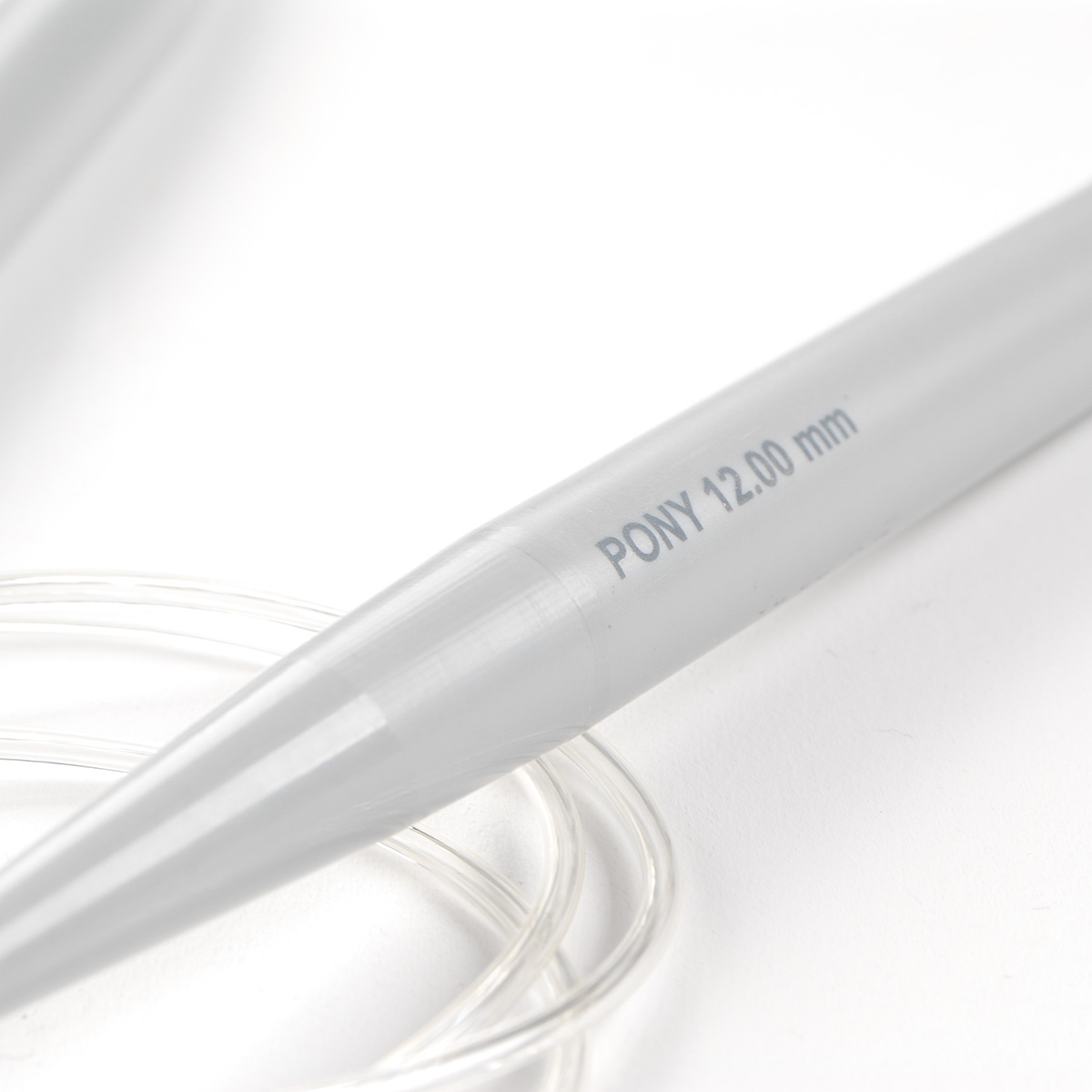 Kruhové jehlice, 100 cm, vel. 12 PONY klasické plastové jehlice spojené plastovým lankem o délce 100cm a velikosti 12.Kruhové jehlice, 100 cm, vel. 12 PONY kvalitní pevné plastové jehlice s povrchovou úpravou pro hladké klouzání.