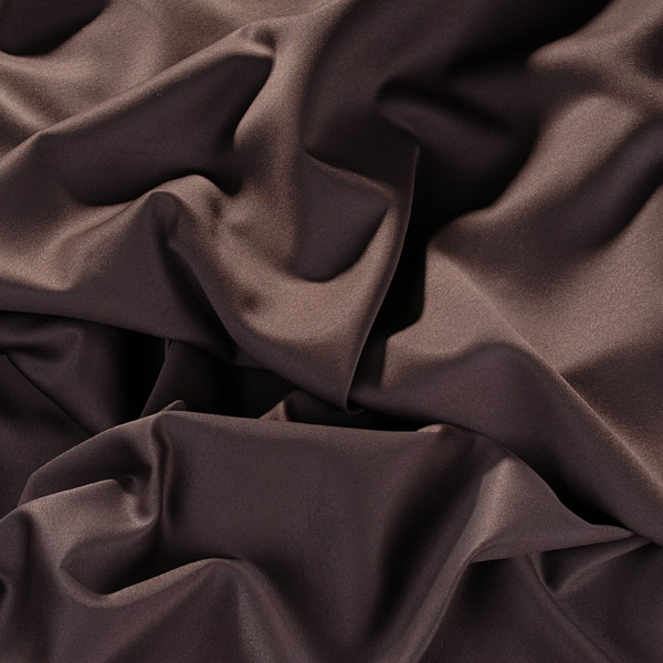 Látka, metráž - pevnější směsová látka v barvě tmavě hnědé s lesklým povrchem z lícové strany a s broušenou úpravou imitace sametu z rubové strany. Pro efekt můžet použíl látku oboustranně. Látka mírně pruží a je vhodná na jarní/podzimní pláště či sáčka. Můžete z ní ušít i sportovní sukně, šaty i kalhoty.