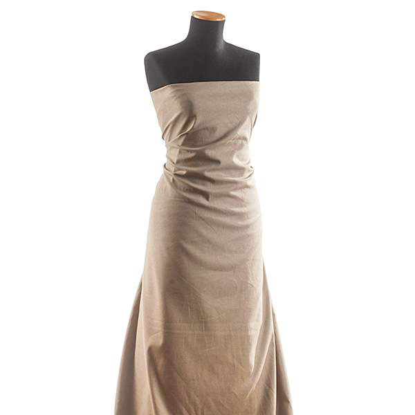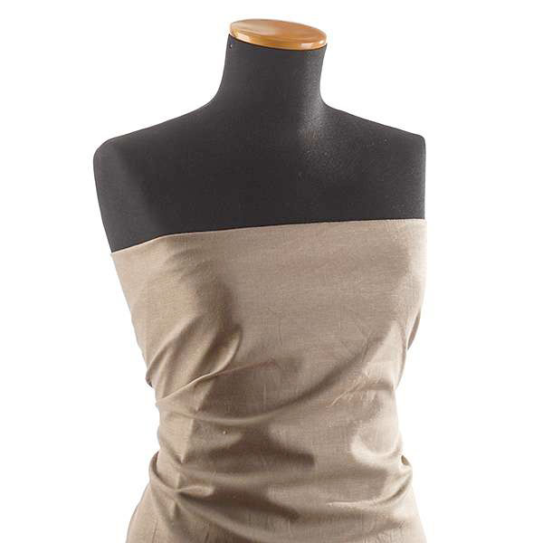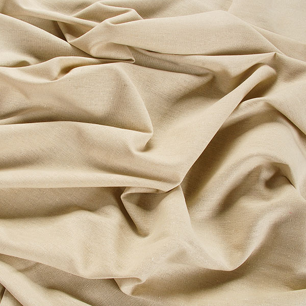 Látka směs viskozy a lnu v barvě světle režné s charakteristickou lněnou strukturou. Látka je střední síly, je pružná a splývavá, má matný povrch a je příjemná na omak.