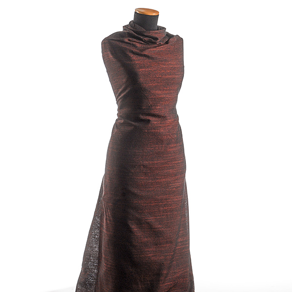 Len viskoza směs- látka vyrobena ve vlastní tkalcovně firmy MarLen v hnědé barvě s charakteristickou lněnou strukturou imitující buretové hedvábí. Len viskoza směs je střední síly, lehce splývavý a pružný svou vazbou do obou směrů.