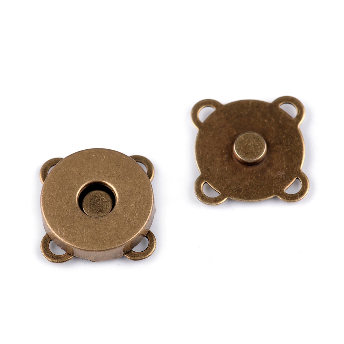 Magnetické zapínání našívací o průměru 18 mm v barvě staromosaz funguje na způsob silného magnetu a nově lze už jen lehce našít, Zapínání je složeno ze dvou částí, které do sebe vzájemně zapadnou a zároveň je drží i magnet. Každý z dílů je potřeba přišít na na daný kus tašky či kabelky, ale lze je využíit i jako zapínání u silnějších látek například na sako nebo kabát.