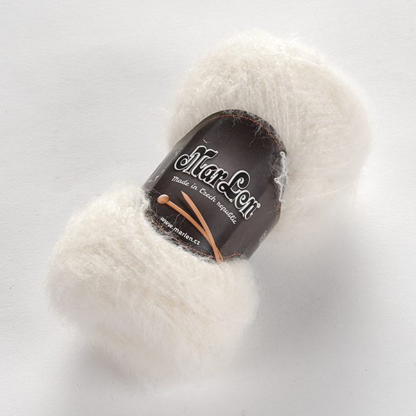 Mohérová pletací příze - směsová mohérová pletací příze v barvě lomené bílé. Mohérová pletací příze má jemný vlas, je tenká z jednoho vlákna a můžete jí použít i jako příplet.