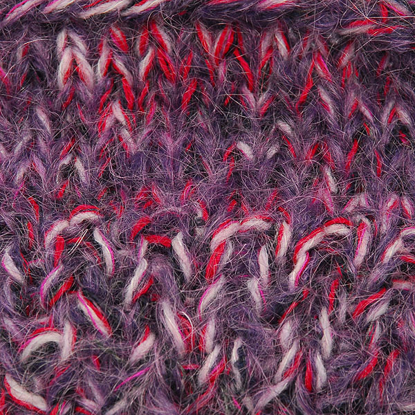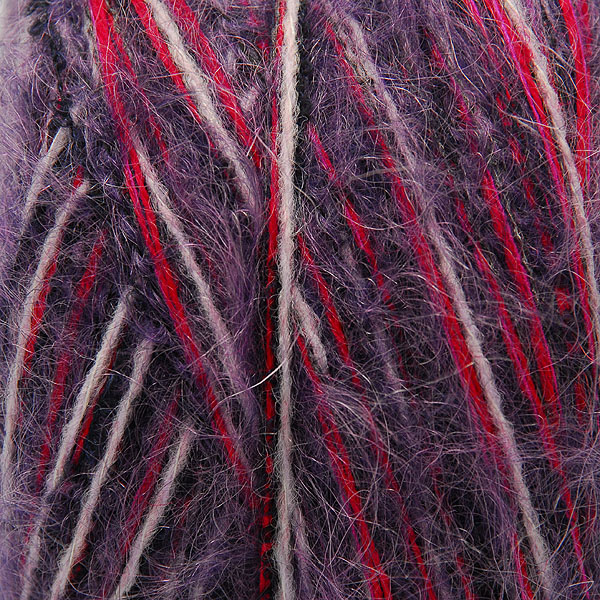 Moherová pletací příze složením vlna směs v barvě fialového melíru. Patří ke středně silným, má jemný moherový vlas. Působí měkce a nekouše.