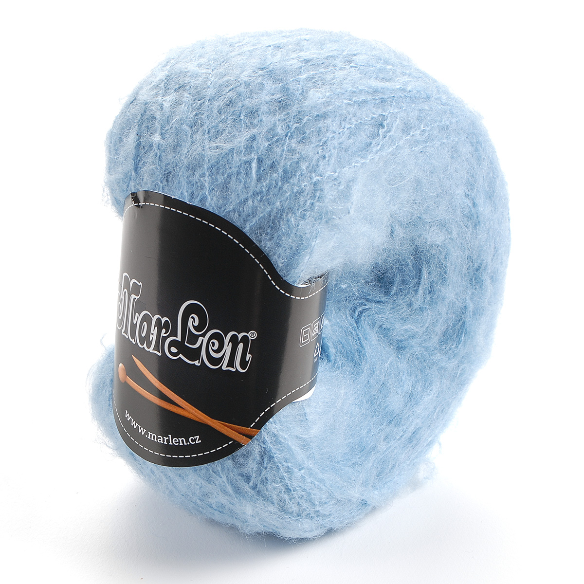 Mohérová pletací příze MarLen modrá - tenká příze směs mohér a vlny s vlasem v modré barvě. Mohérová pletací příze MarLen modrá - přizi můžete použít i jako efektní příplet do svetru nebo na čepici či šálu.