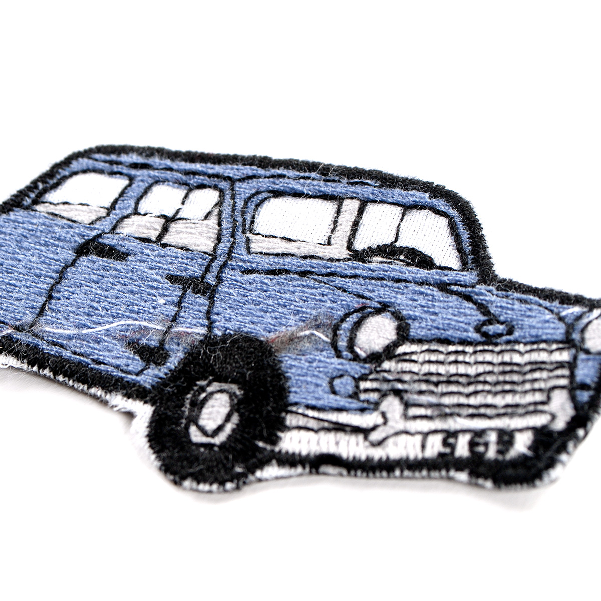 Nažehlovačka auto v modročerné barvě. Nažehlovačka je vhodná na dozdobení či opravě oděvu, ale i tašky, batůžku či psaníčka.