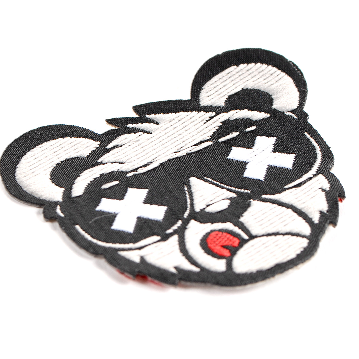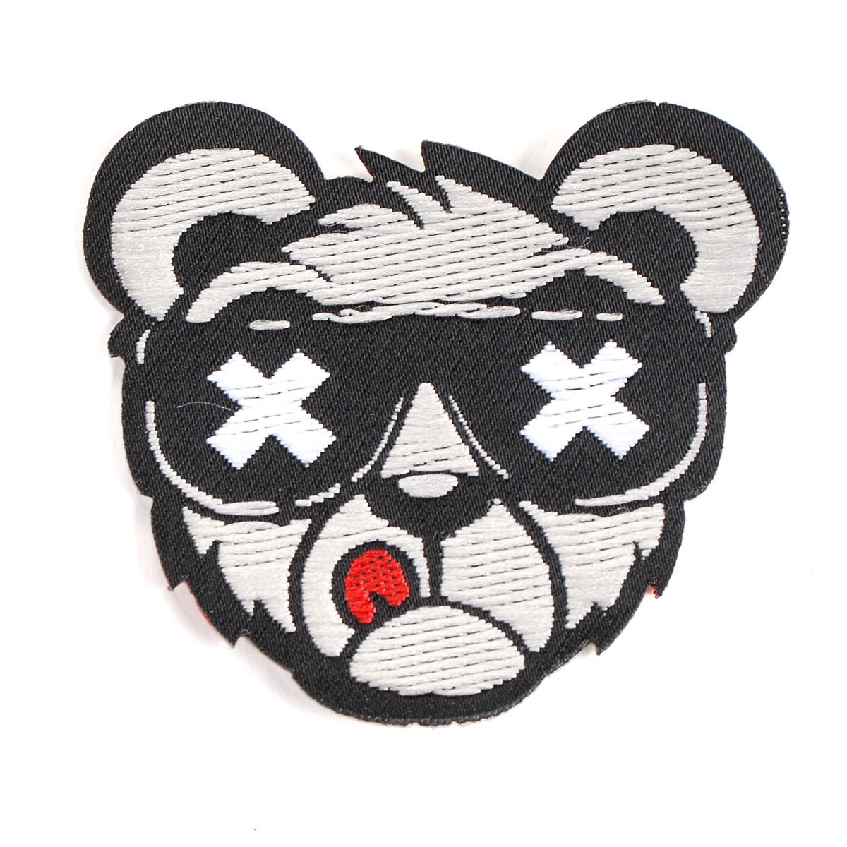 Nažehlovačka medvěd s brýlemi v barvách šedé, černé a červené. Nažehlovačka je vhodná na dozdobení či opravě oděvu, ale i tašky, batůžku či psaníčka.