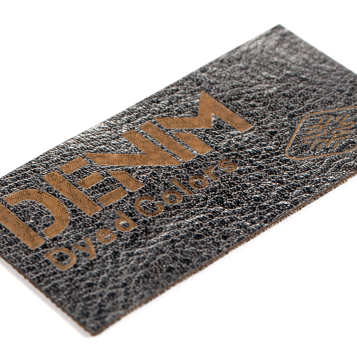 Nažehlovačka nápis Denim v hnědých barávách. Nažehlovačka je vhodná na dozdobení či opravě oděvu, ale i tašky, batůžku či psaníčka.