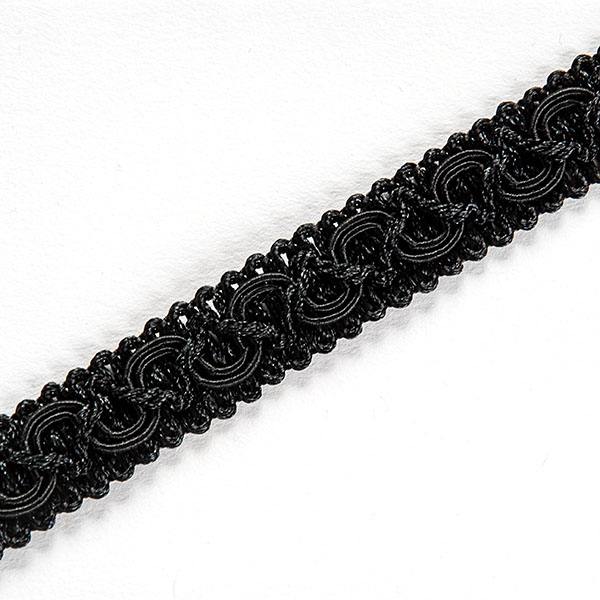 Prýmek textilní dekorační prýmek černé barvy. Prýmek , je pevnější a jemný na omak. Prýmek oceníte při šití nevšedních šatů renesančníhohistorického kostýmu, nebo zdobení tašky, klobouku nebo jako dekorační doplněk na polštáře, ubrusy či prostírky.