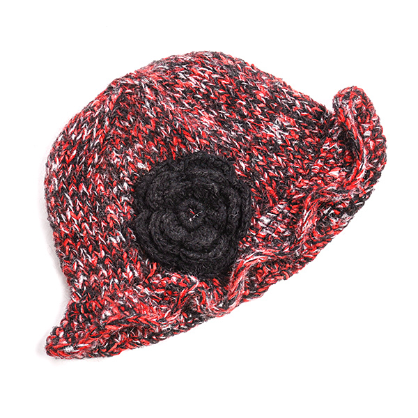 Pletená čepice klobouk s kytkou