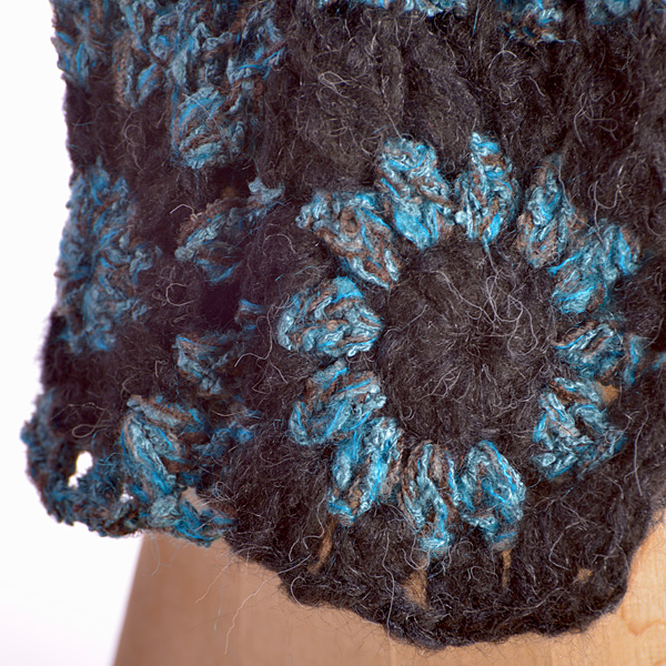 Čepice má obvod cca 47-55 cm velikost M-L, šířka háčkovaného lemu cca 4 cm