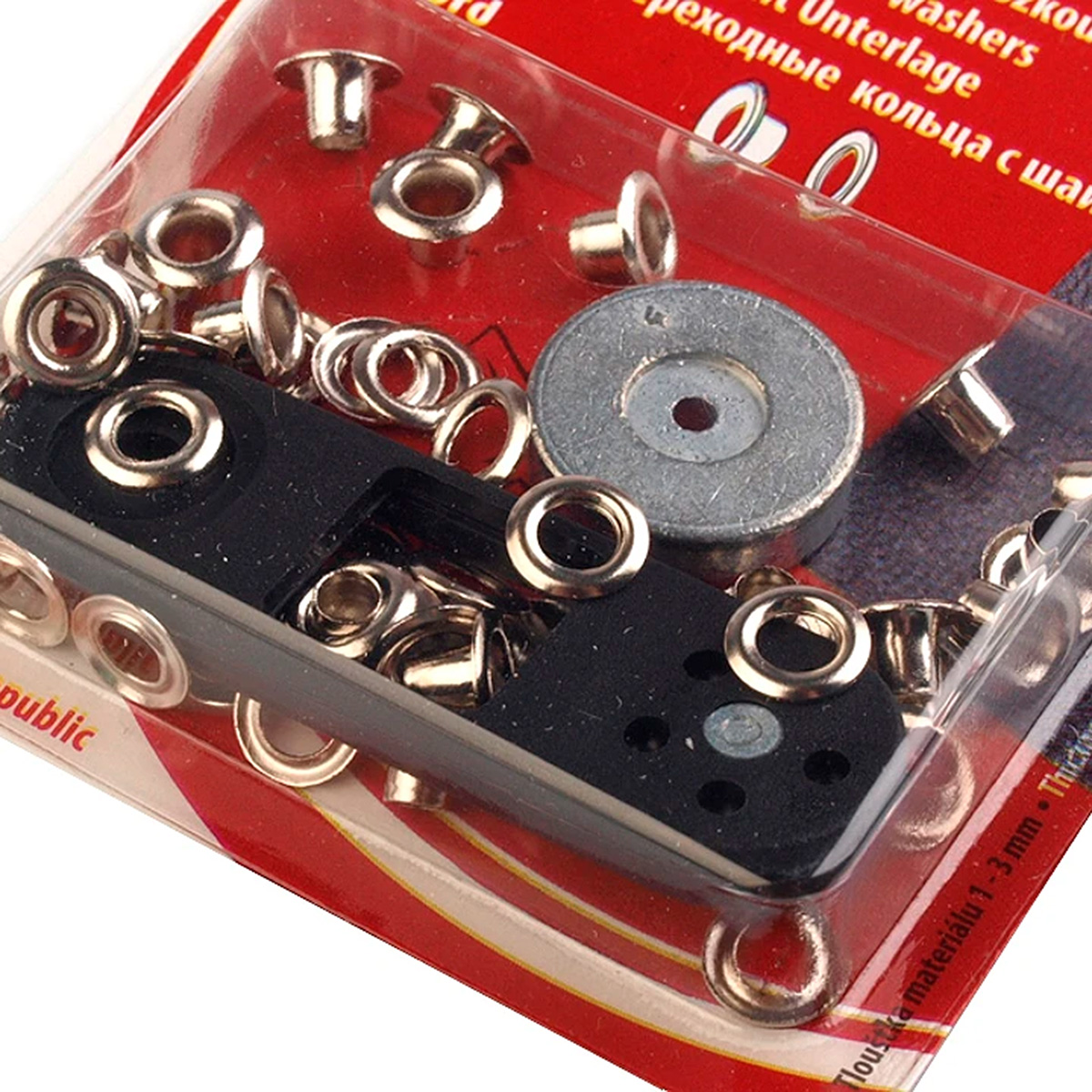 Průchodky 4x5x7,5 Ø8mm stříbrné kovové nerezavějící průchodky v barvě nikl stříbrné. Průchodky 4x5x7,5 Ø8mm stříbrné průchodky se skládají ze dvou části a sice průchodky a podložky. Součástí balení je mini lis a samotné nýtování se provede ručně dle návodu na zadní straně balení. V případě elastického materiálu je vhodné použít výsečník s menším průměrem, než je průchodka, na nepružnou pevnou látku je vhodné použít stejný průměr průsečníku jako je průměr průchodky.