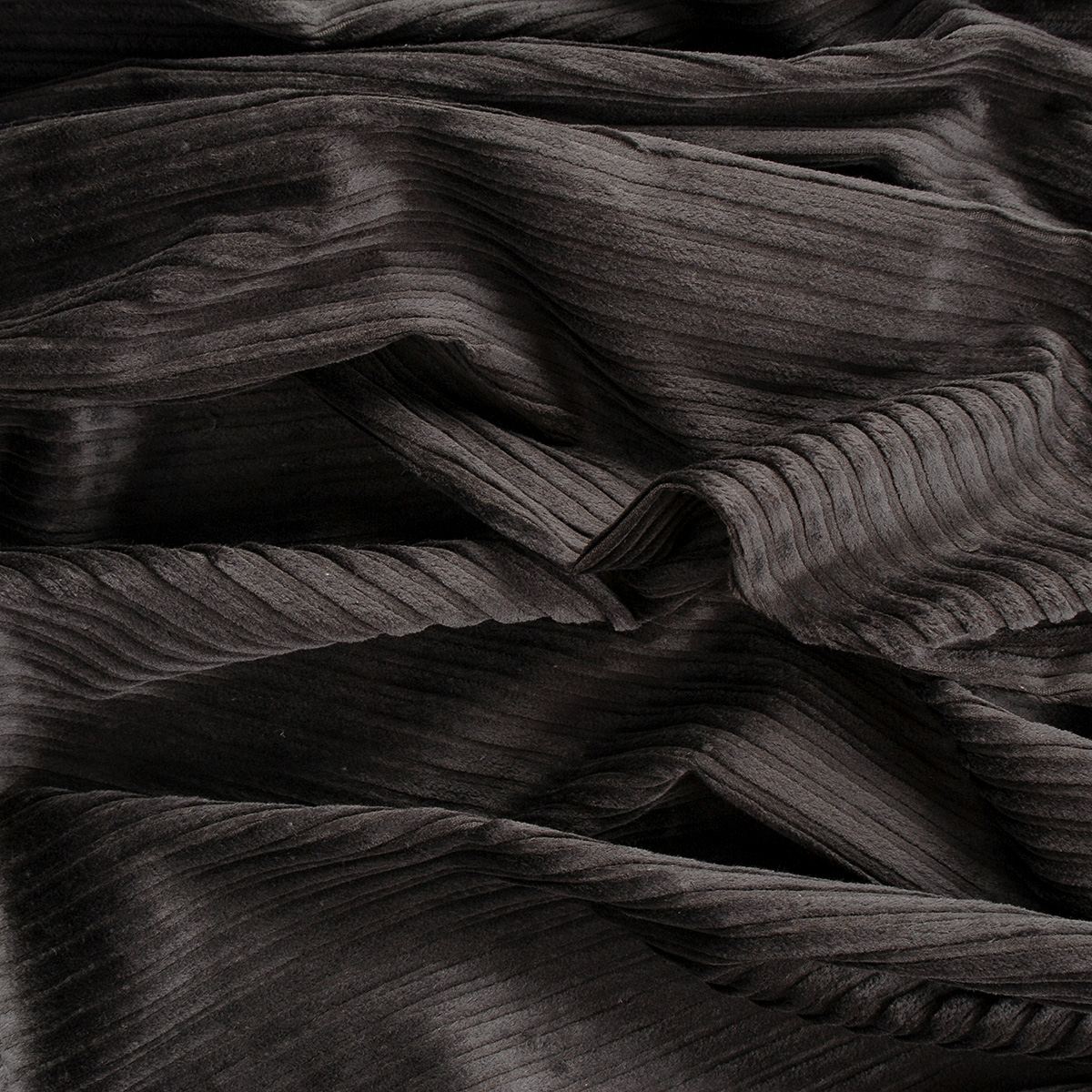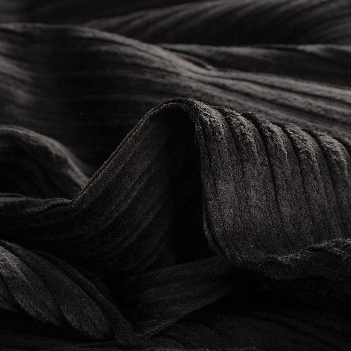 Pružný manšestr v černém odstínu zaujme plastickým vzorema širšího proužku. Tento bavlněný manšestr má elegantní matný povrch s charakteristickým jemným vlasem. Díky přídavku elastanu je látka pružná a poddajná, přitom však zůstává dostatečně pevná pro ušití tvarovaného oblečení.