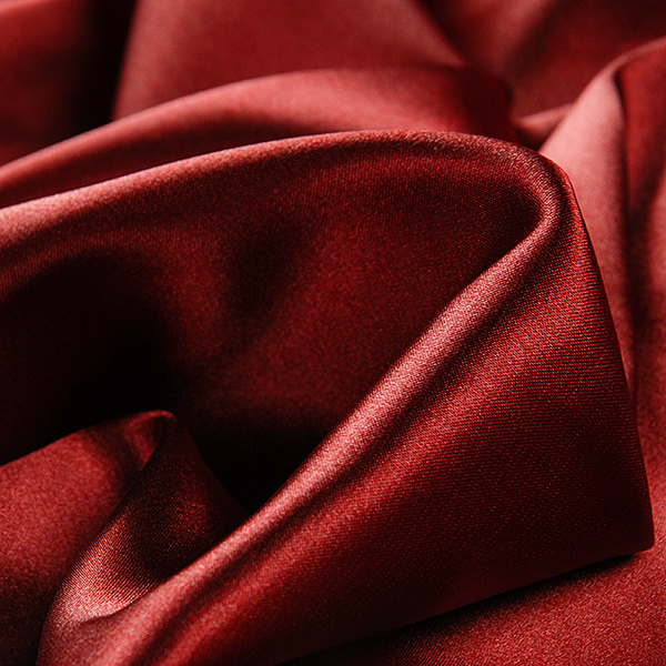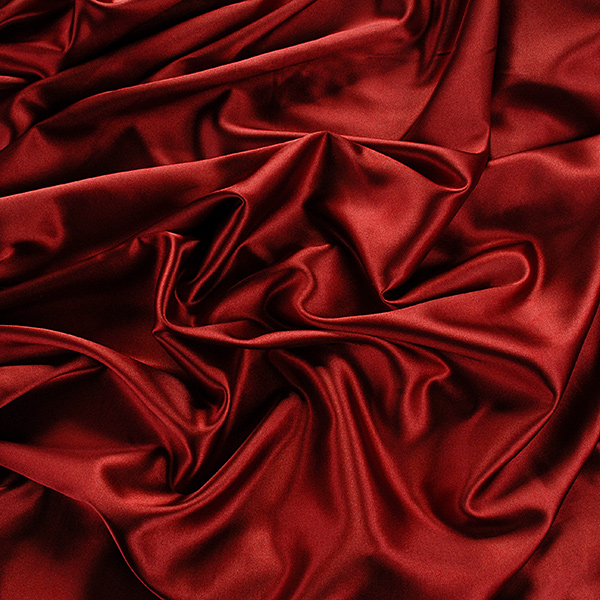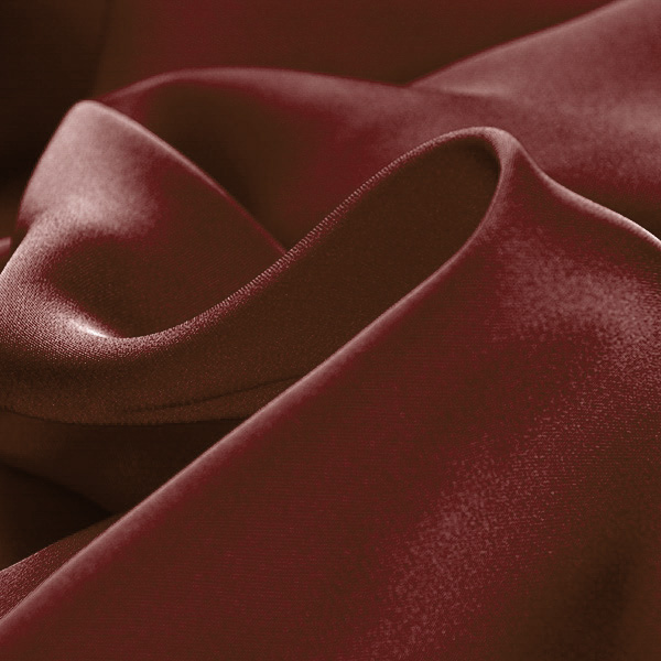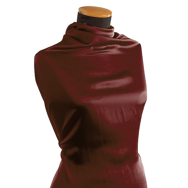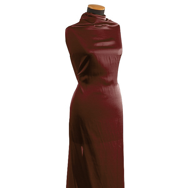 Pružný satén látka hladký jemný satén v hnědovínové barvě. Saténová metráž má charakteristický saténový vzhled, je pružná, splývavá a neprůsvitná.