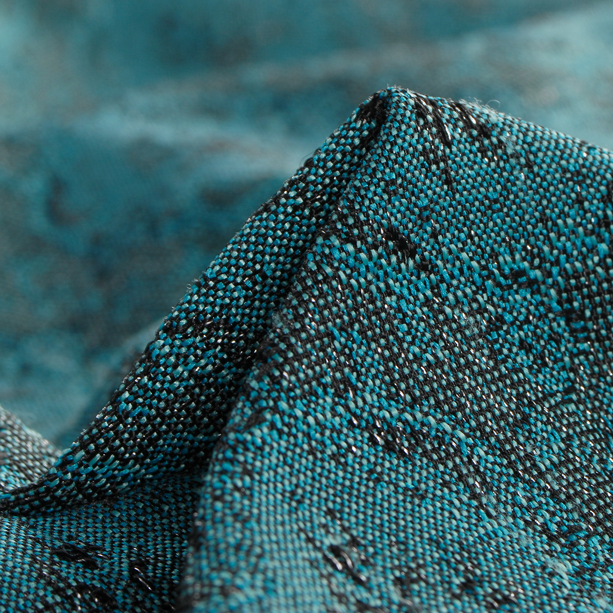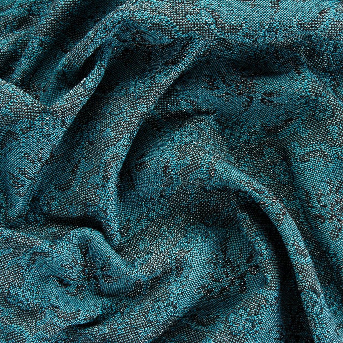 Replika historické látky Art Fabrics Medailon- žakárová dekorační tkanina s ornamentálním vzorem tyrkysové barvy na černém podkladu.Replika historické látky Art Fabrics Medailon můžete použít na historické šaty z období gotiky. Replika historické tkaniny byla vyrobená v naší vlastní tkalcovně na Vysočině.