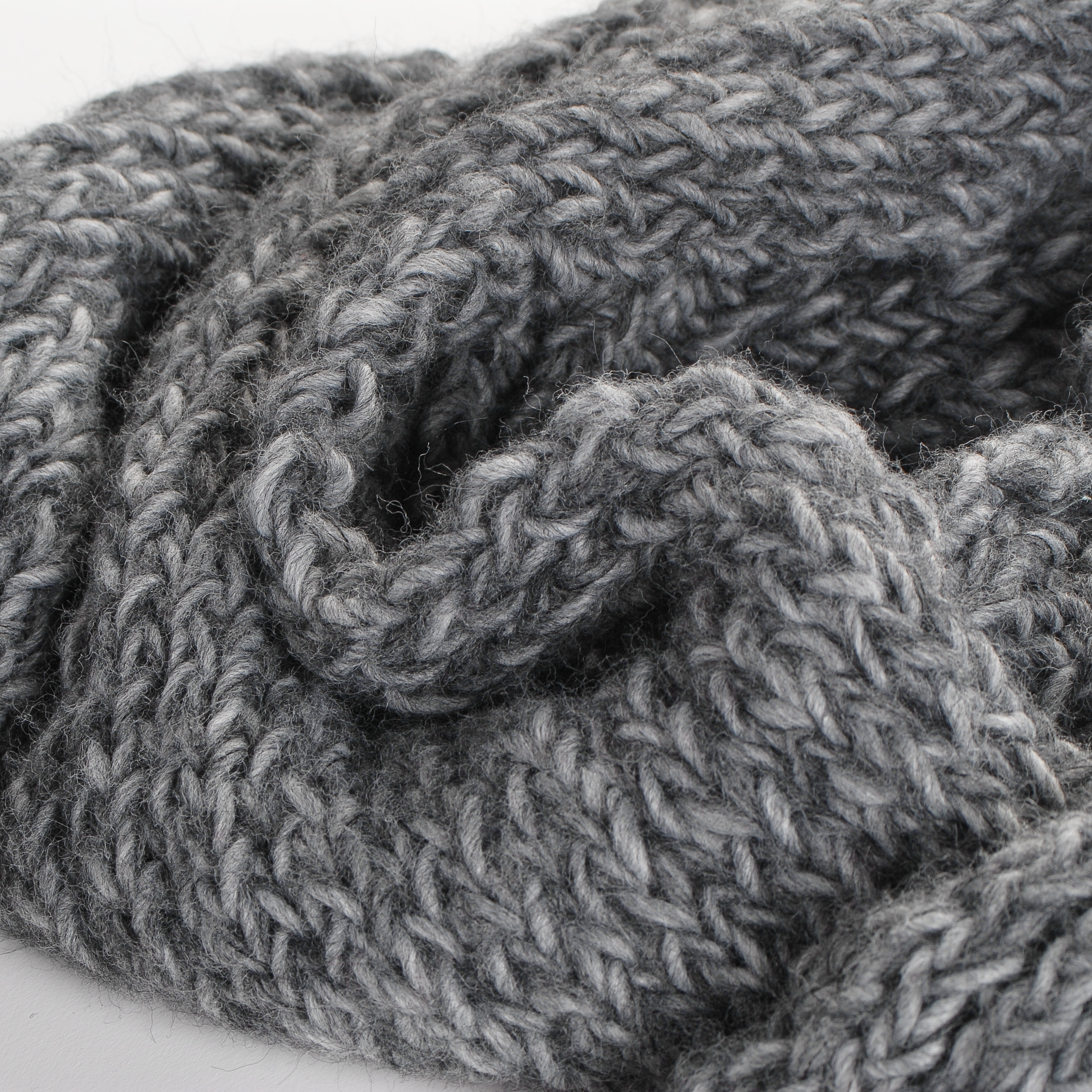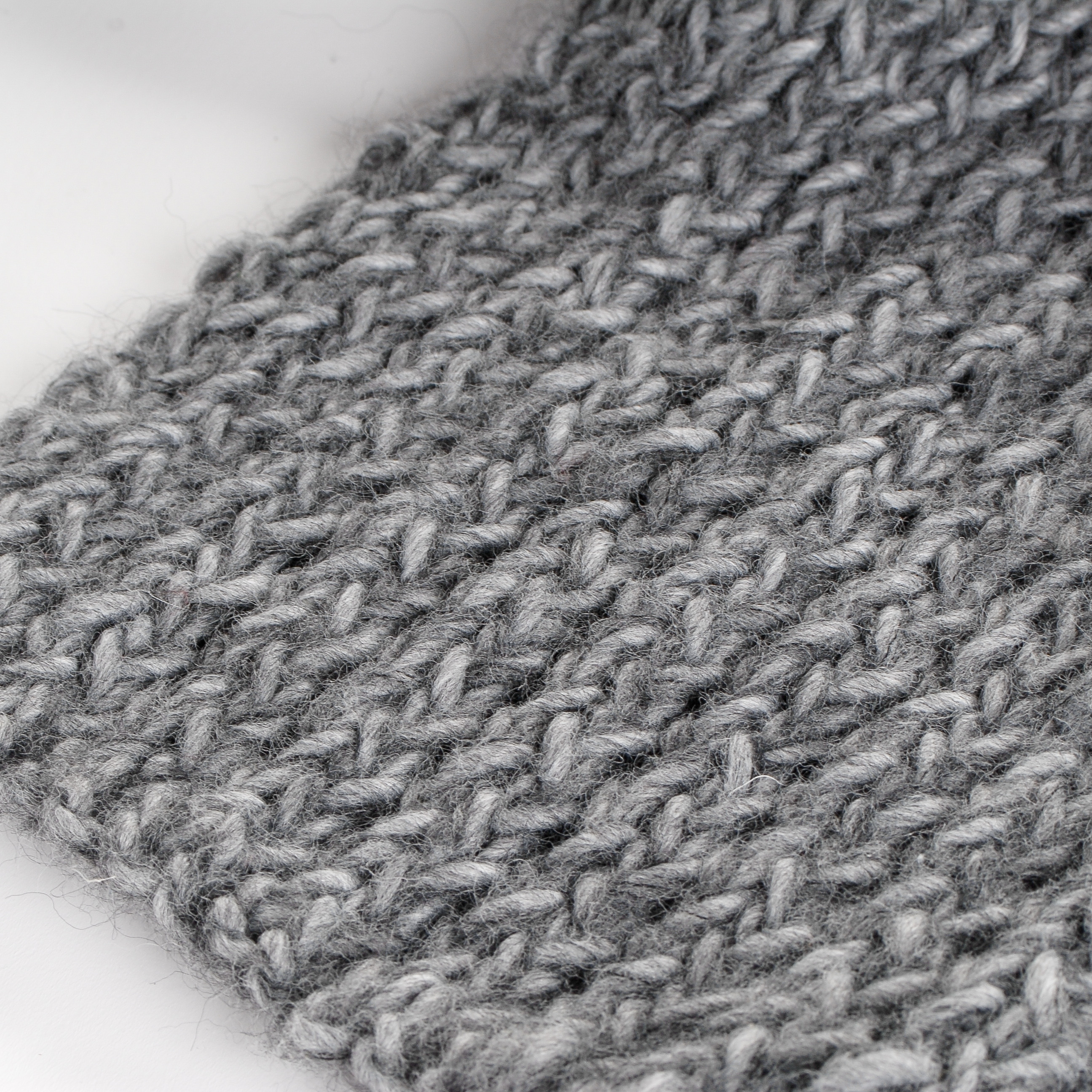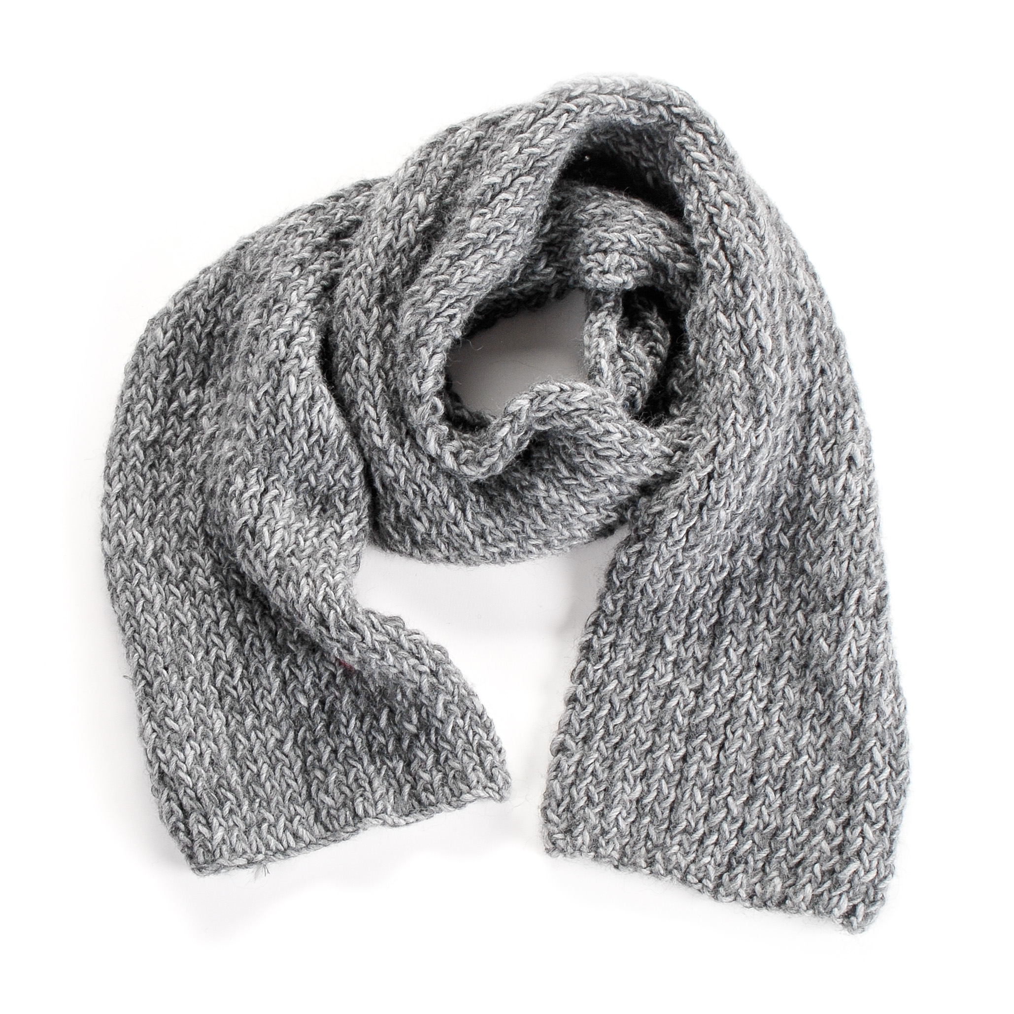 Ručně pletená šála v barvě tmavě šedého melíru s plastickým patentovým vzorem. Šála je měkká, hřejivá a nekousavá, může být vhodným doplňkem, který příjemně zahřeje.