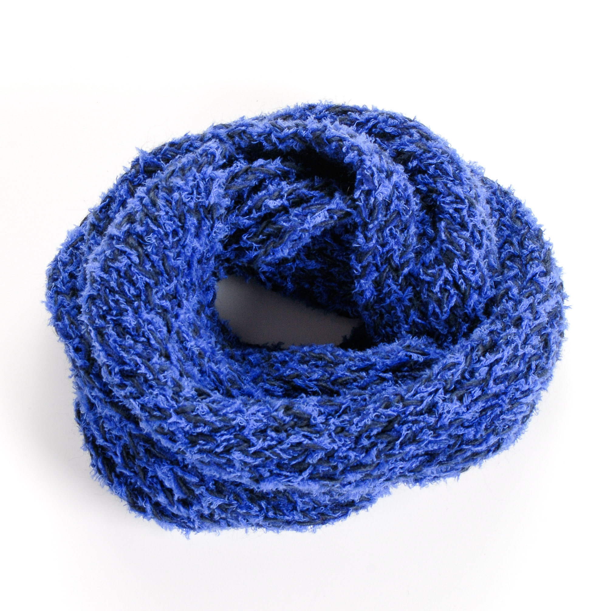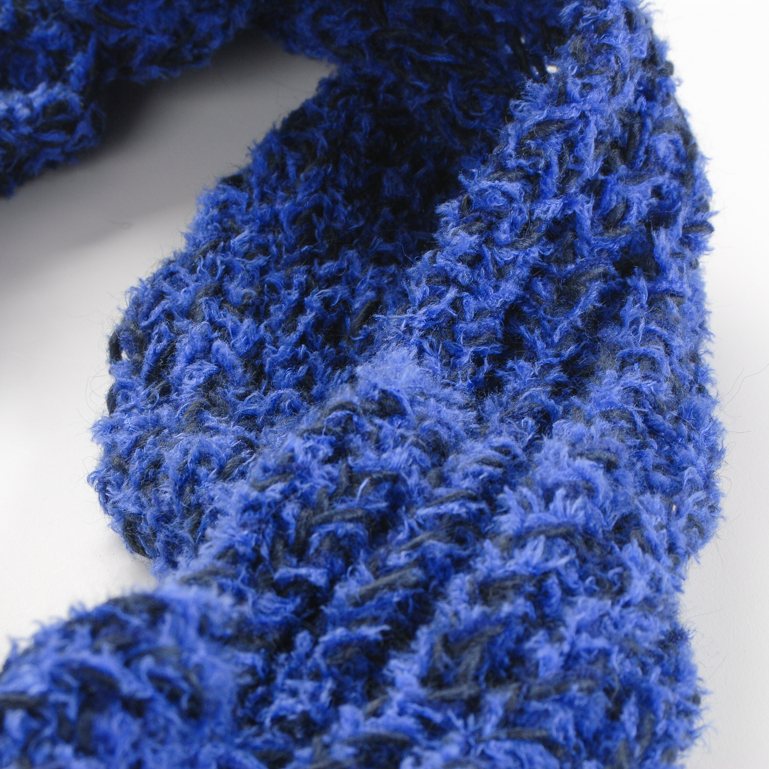 Ručně pletená šála/tunel v barvě modročerného melíru s plastickým patentovým vzorem. Tunelový šál je vlastně sešita šála, ze které lze vykouzlit bohatý hřejivý rolák, nebo i částečně dát přes hlavu jako "čepice". Šála/tunel je hřejivá, mekoučká a nekousavá, může být vhodným doplňkem, který příjemně zahřeje.