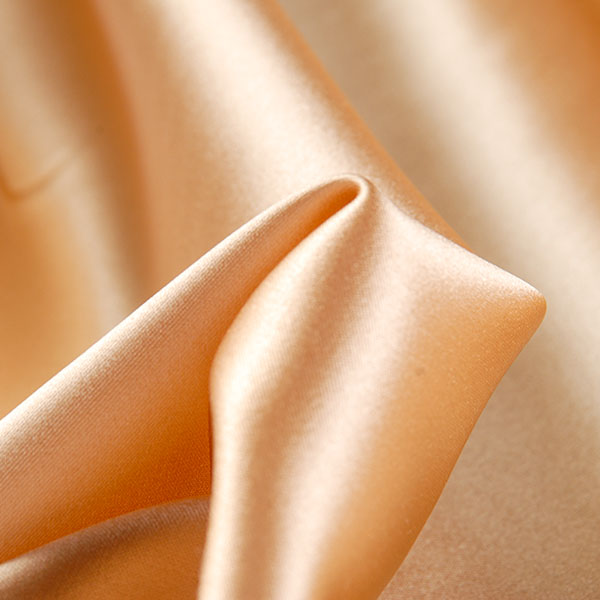 Vzor:jednobarevný hedvábný satén broskvové barvy.