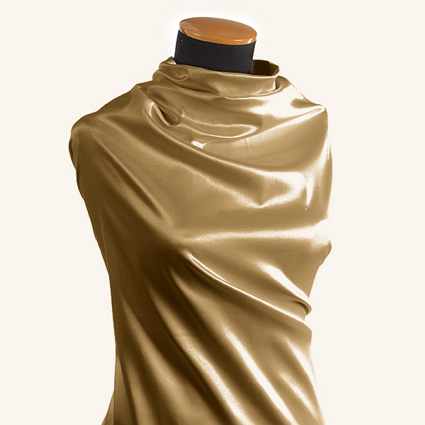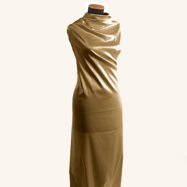 Pružný jemný satén imitace hedvábí - lesklá látka satén - imitace jemné hedávbné látky v tělové světle hnědé barvě. Látka má charakteristický saténový lesk, je lehce pružná a splývavá.