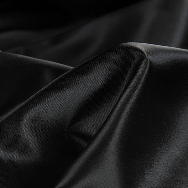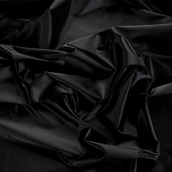 Satén pružný matný černé barvy šíře 125cm luxusní saténová látka imitující hedvábným povrch látky v sytě černé barvě. Satén pružný matný látka má charakteristický saténový povrch, je matná, lehce pevnějsí ale ne tuhá, je pružná, splývavá a neprůsvitná.