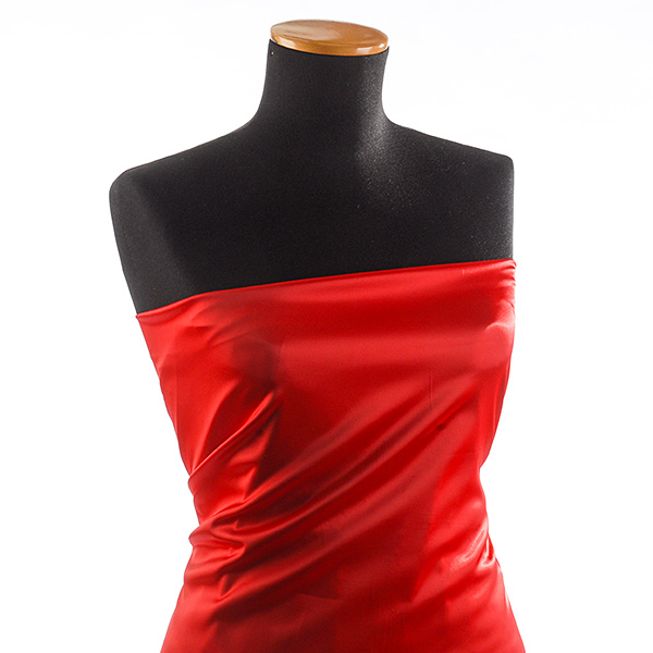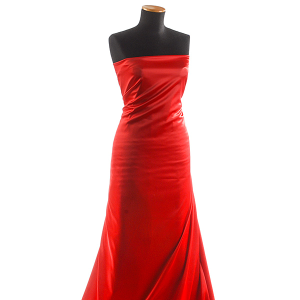 Satén pružný pololesk pružný satén s hladkým povrchem v červené barvě. Satén pružný má charakteristický saténový pololesklý porvch, látka je pružná, lehce splývavá a neprůsvitná, je vhodná na tuboé šaty a lehká sáčka.