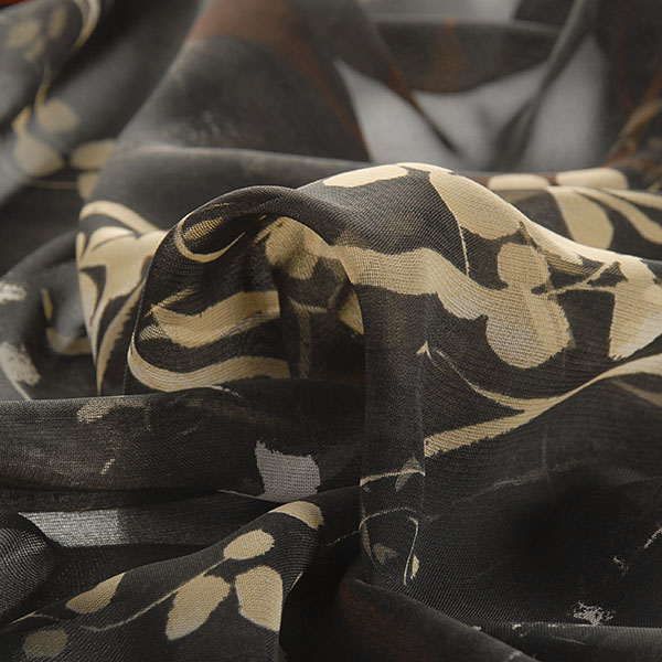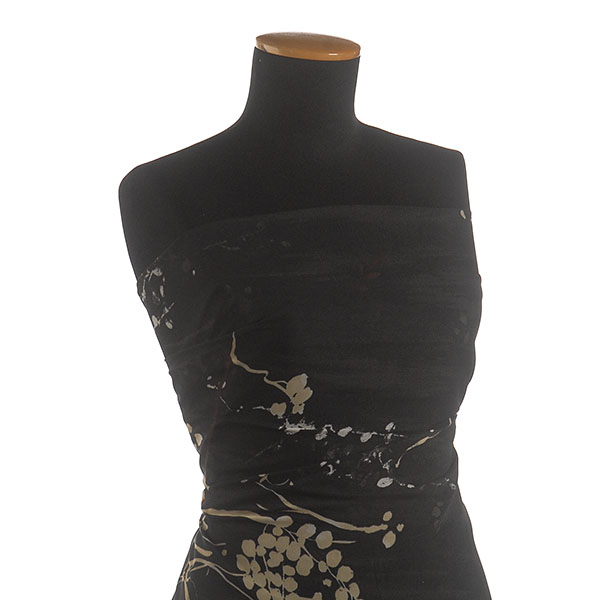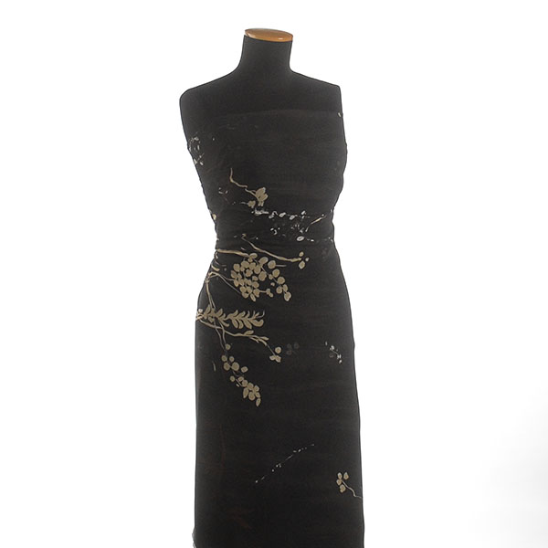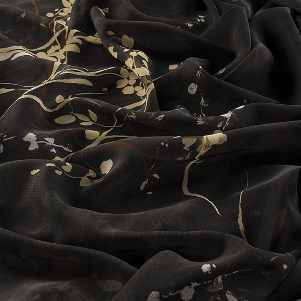 Šifon květinový motiv béžový jemná látka s matným hladkým povrchem s květinovým motivem béžové barvy na černém podkladu.Šifon květinový motiv béžový vzdušná a splývavá, průsvitná látka,proto zvažte použití podšívky.