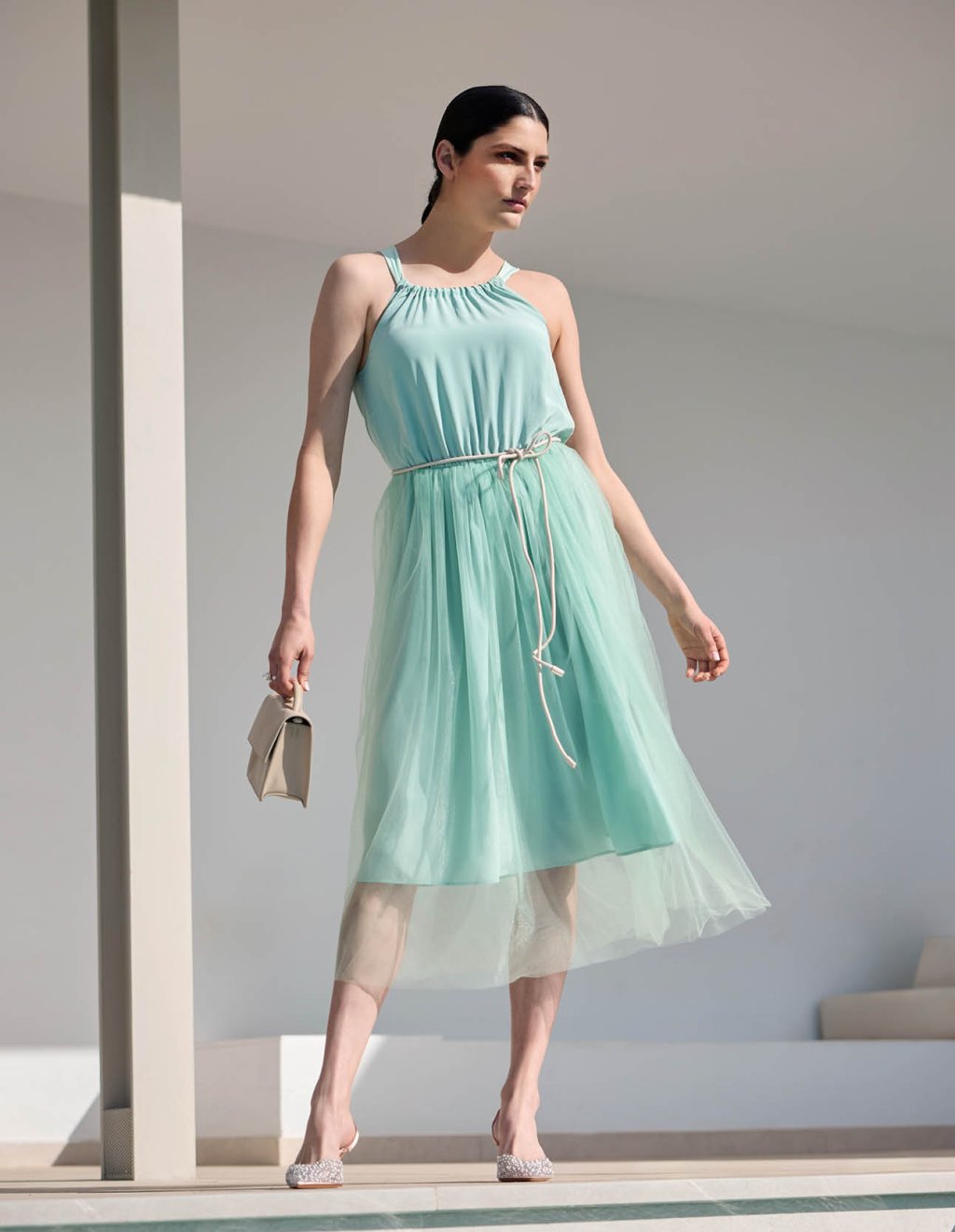 Jestli si tyto šaty vezmete na běžné nošení nebo do společnosti, záleží jen na vás. Pro obě příležitosti se totiž hodí skvěle. Když chcete vypadat opravdu elegantně, jsou tyto šaty v kombinaci úpletu se vzhledem saténu a vzdušného tylu, ideální volbou. Velká mašle v zadním díle živůtku dojem ještě umocní. (Profi tip: tyl můžete zvolit i jiný než hladký: např. s puntíčky.)