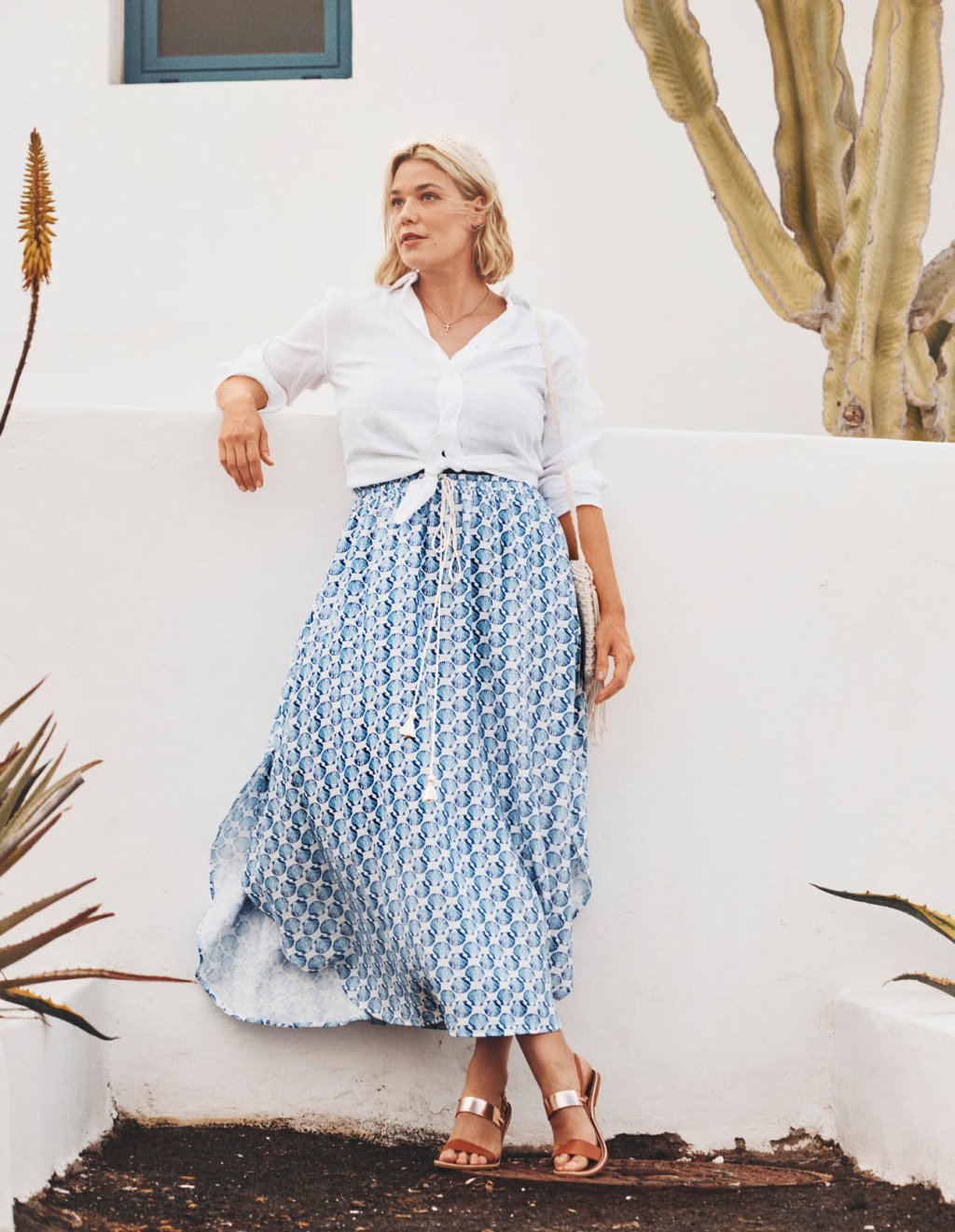 Mírně obtížnější model na ušití, ale vyplatí se, trošičku si s ním vyhrát. Odměnou vám totiž bude sukně, která se vám nebude díky nabrání hned tří dílů skoro vůbec mačkat. A to ani když na sukni použijete látku z přírodního vlákna: doporučujeme např. viskozovou šatovku, jemnou bavlnu nebo i některý z tenších lnů. Pokud vám nevadí šít i spodničku, můžete použít i šifon.