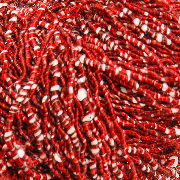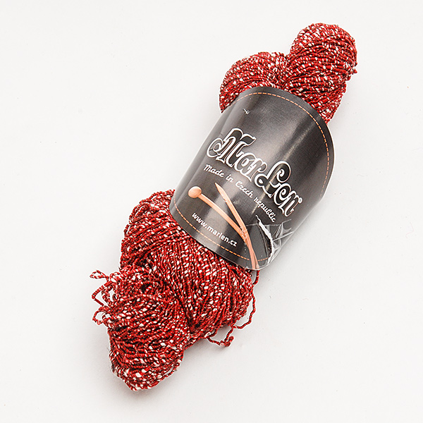 Směsová viskozová pletací příze v barvě červeného melíru. Efektní příze má plastický povrch drobných nopků nestejně velkých .